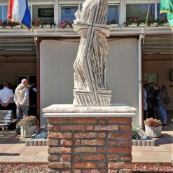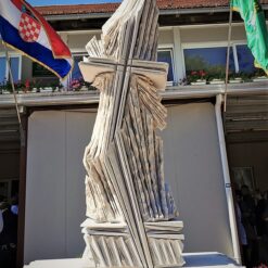 Akademski kipar Mata CROata ispred svoga kiparskog atelijera u Vrbovcu dovršava skulpturu “Križ u oluji”