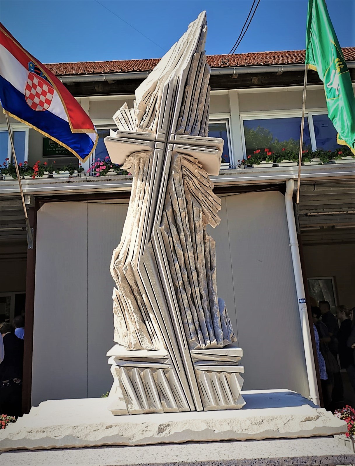 Autor spomenika, Mate Turić izrazio je zadovoljstvo što je mogao izraditi monumentalnu kamenu skulpturu u centru Gradeca: “Križ u oluji u obliku jedrenjaka simbolizira put kroz koje kršćanstvo, ali i hrvatski narod prolazi kroz povijest. Jedro simbolizira slobodu, ljubav, zajedništvo, povezivanje ljudi i naroda… Križ kao simbol kršćanstva i duboke vjere plovi unatoč olujnim vjetrovima i valovitom moru. Križ, čvrst i postojan kao hrvatski kamen od kojeg je napravljen, plovi dalje i pruža utočište, sigurnost i zaštitu od olujnih nevremena hrvatskom narodu i vjernicima diljem svijeta…”