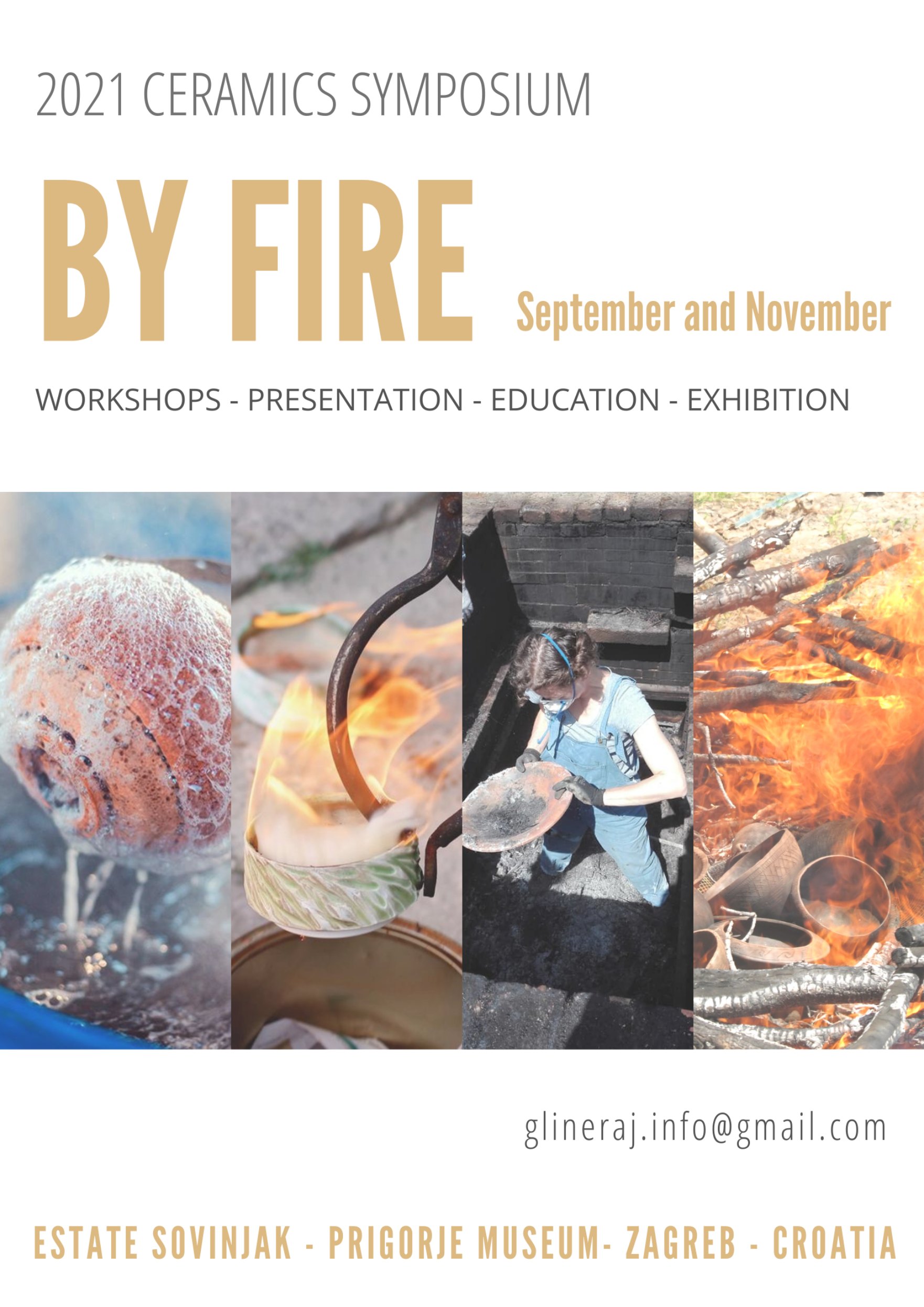 Organizator BY FIRE – keramičkog simpozija je Udruga Glineraj koja se već 5 godina bavi promicanjem, razvitkom i unapređenjem keramike, kroz organiziranje različitih aktivnosti. ByFireorganizira je isključivo za ljude koji se bave keramikom profesionalno ili iz ljubavi i ove godine će se održati 25.-26. rujna. i 2.-3. listopada na Imanju Sovinjak, u blizini zagrebačkog naselja Planina Gornja u Parku prirode Medvednica. Za sudionike simpozija Udruga Glineraj pripremila je radionice o tehnikama primitivnog paljenja keramike (biskvitno paljenje keramike na otvorenoj vatri, paljenje keramike u vatrenoj jami, saggar, obvara i raku). Voditelji ovih radionica su keramičarke Marina Blažek i Nadica Eichhorn. U sklopu simpozija održat će se predstavljanje projekta Environmenta art galerija – Vukov Dol i otvorenje outdoor instalacije 5t ART koja će trajno biti smještena na izletištu uz potok Vukov dol u Parku prirode Medvednica. Kao dio simpozija od 8. do 12. studenog 2021. biti će postavljene dvije izložbe u Muzeju Prigorja u Galeriji Kurija, međunarodna keramike GeometriARTija i izložba suvremene keramike ByFire 2.