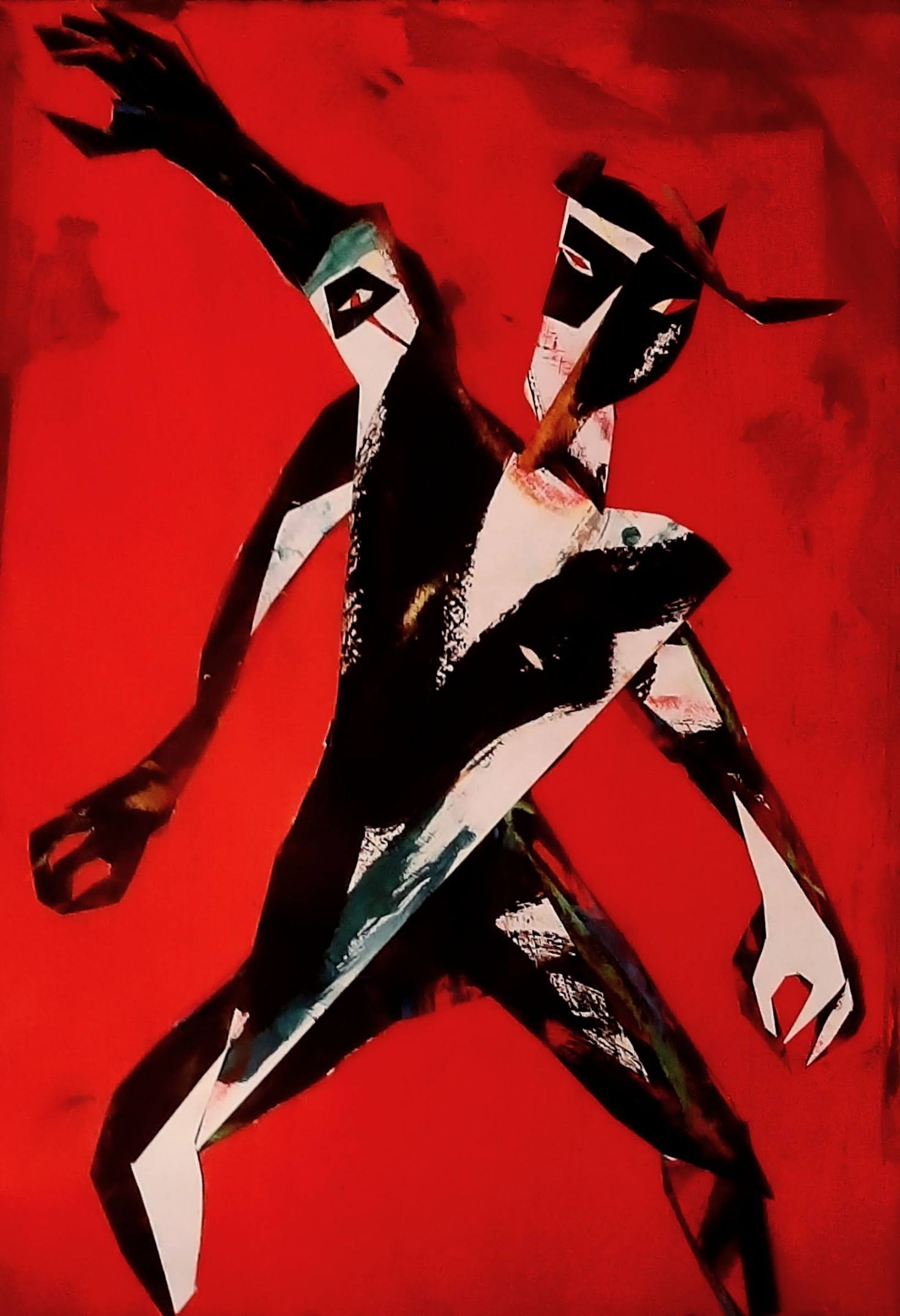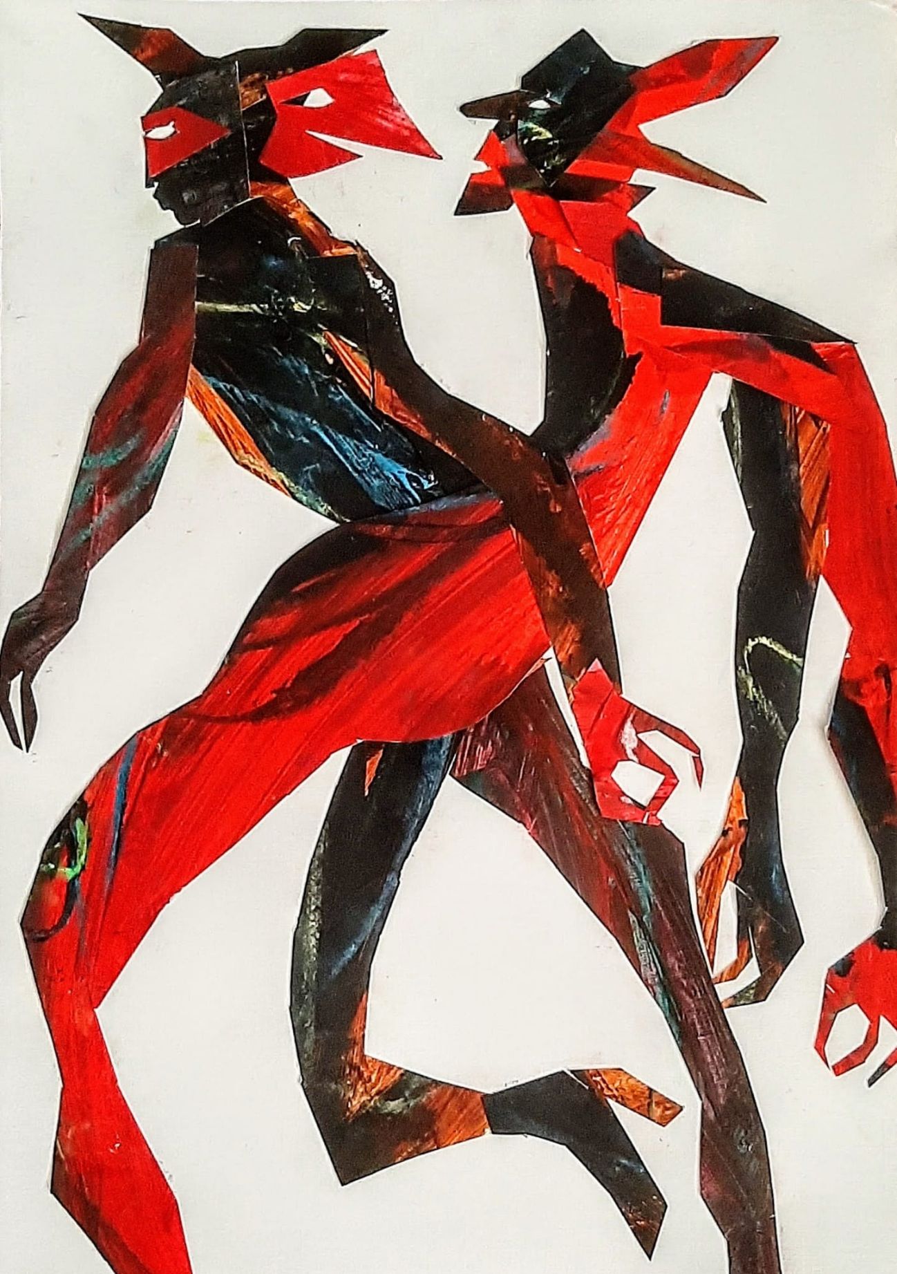 Novi ciklus kolaža, slikar je posvetio scenama iz pakla, točnije motivima predpotopnih mitoloških civilizacija, u snažnoj crveno crnoj kombinaciji boja, u kojima se ističu čudesni, rogati likovi posve skrivenih, neotkrivenih lica, svi u grču, u užurbanosti, u hitnji, u strahu od kašnjenja