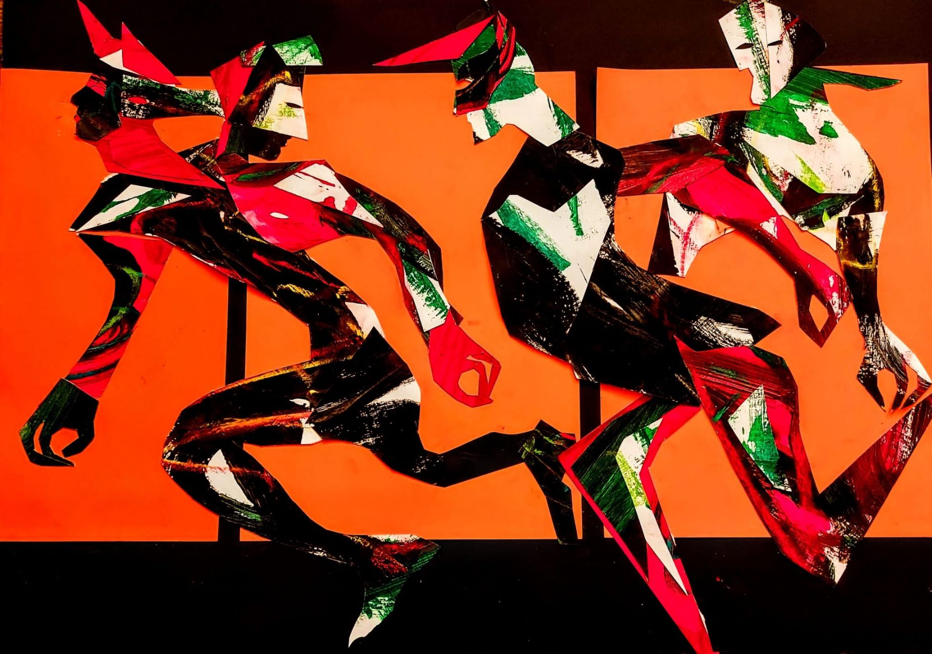 Svaki kolaž nosi svoju priču, legendu koja pripada samo njemu i čini nisku pripovijesti o figurama u kretanju skrivenih lica.