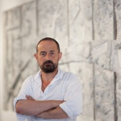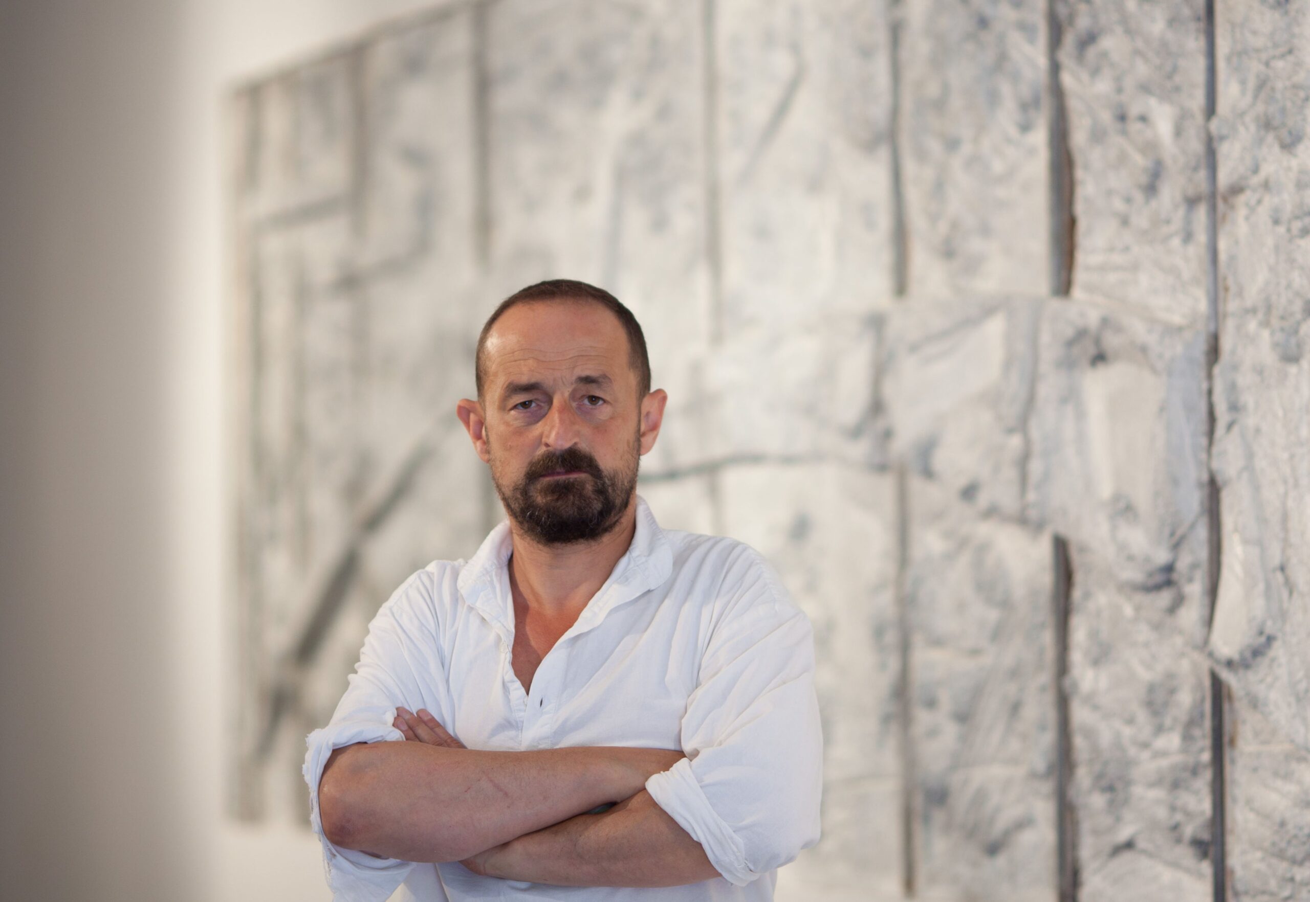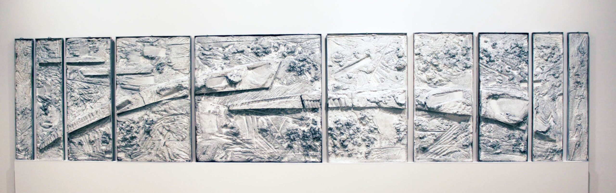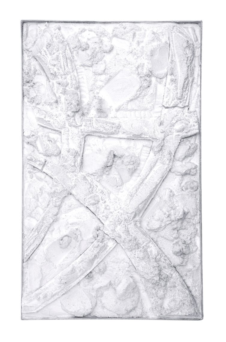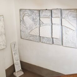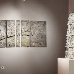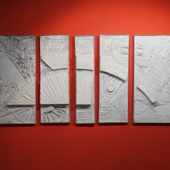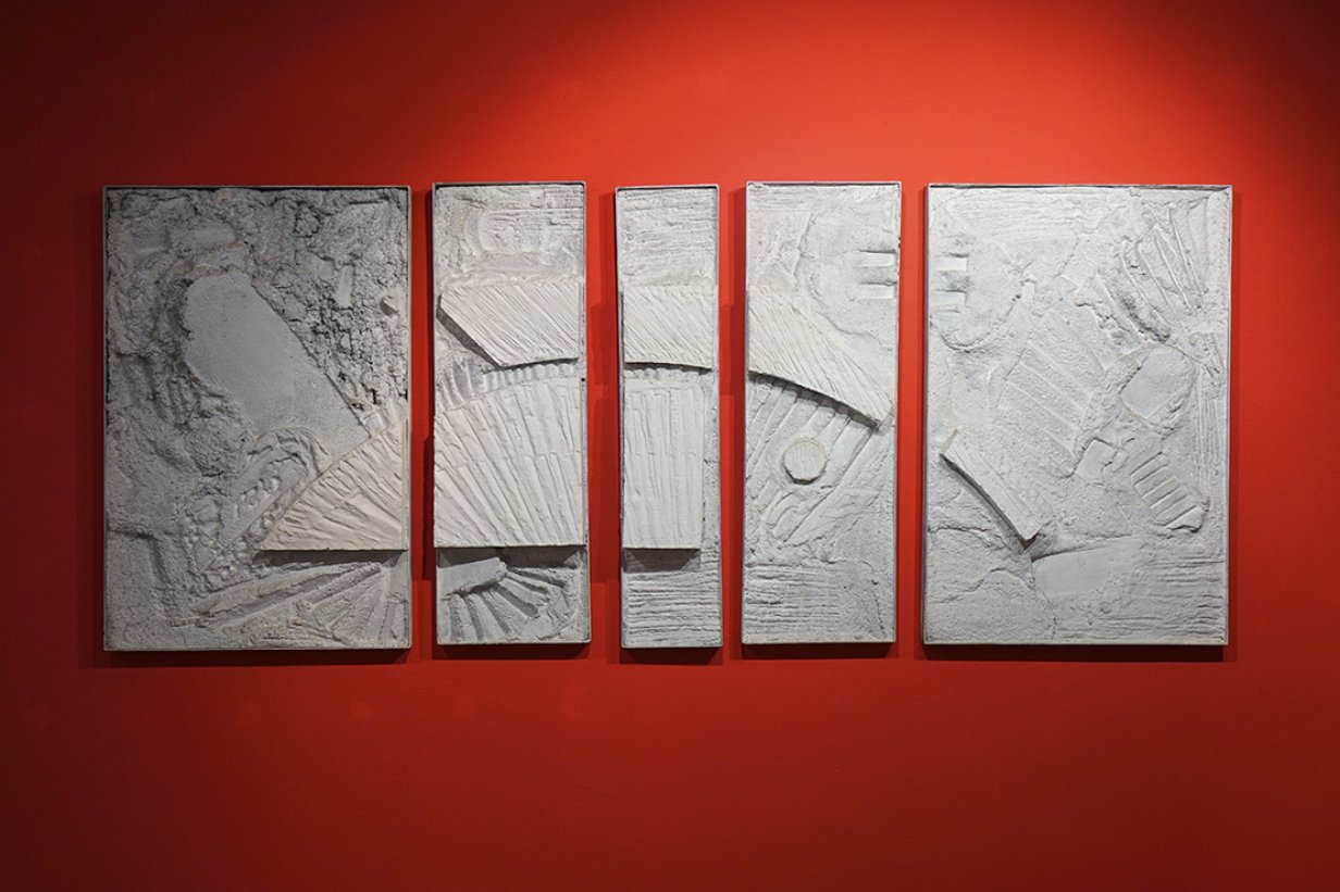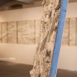 u seriji ovalnih formi koje dominiraju u slikoskulpturama (za koje osobno mislim kako je riječ o posveti krilu ptice, letu, mogućnosti letenja i nevjerojatnom osjećaju slobode, neograničenosti) Košir je maestralno konstruirao svijet sačinjen od betona, živog betona, koji prepun vreline izvire i razlijeva se na površini