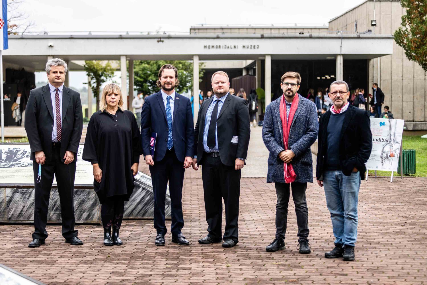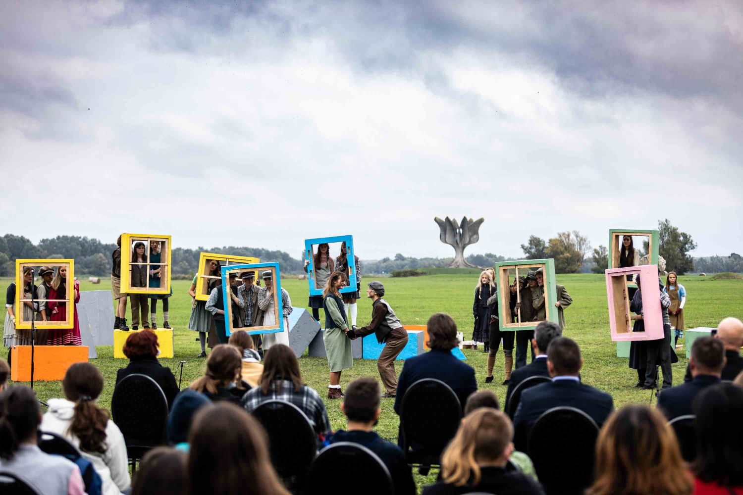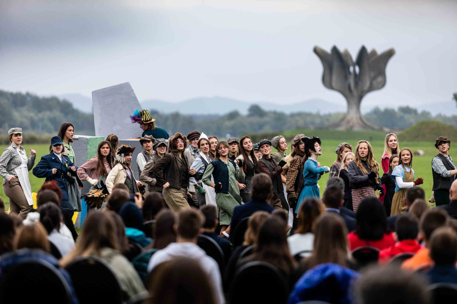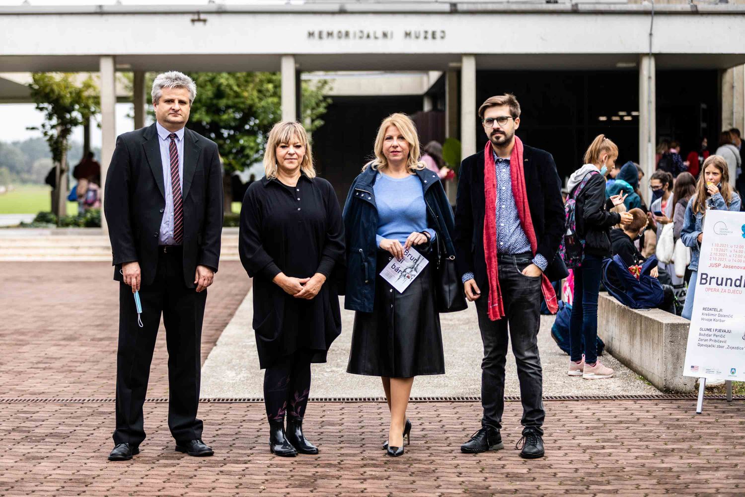 Opera se odigrala u gotovo nestvarnoj atmosferi, na livadi pred Memorijalnim centrom Jasenovac, svega par stotina metara od „Kamenog cvijeta“, koji je kao pozadina bio dio scenografije. Predstavi su nazočili NJ.E. Ilan Mor, veleposlanik Izraela koji nam je vidno potresen nakon izvedbe rekao: „Ovo je za mene bilo jedno vrlo emocionalno iskustvo, ali sam sretan kada vidim koliko je mladih došlo pogledati Brundibár, priču s važnom porukom, da se zajedništvom svako zlo može zaustaviti.“ Nadalje, bili su tu i Jaroslav Kamas, konzul Republike Češke, Anna Rich, predstavnica UNHCR-a u Hrvatskoj uz kolegu Jana Kapića, Nathalie Linow, savjetnica za kulturu veleposlanstva Savezne Republike Njemačke, Estelle Halimi – Dagron, savjetnica za suradnju i kulturnu djelatnost veleposlanstva Francuske, Ivan Marić, izaslanik ministra Gordana Radmana Grlića, Dubravka Đurić Nemec, posebna savjetnica ministrice Nine Obuljen Koržinek, Marija Mačković, izaslanica Hrvatskog sabora, Dženana Kalamujić, izaslanica zagrebačkog gradonačelnika i Ivona Nemeth, izaslanica župana Sisačko – moslovačke županije. Ispred veleposlanstva SAD-a bili su Cameron Millard, Drew Giblin, Vanja Ratković i Mark Fleming koji je nakon izvedbe izrazio svoj ponos i zadovoljstvo što je mogao poduprijeti ovako važan događaj, te istaknuo kako će i u budućnosti nastojati podupirati projekte usmjerene k promicanju tolerancije.