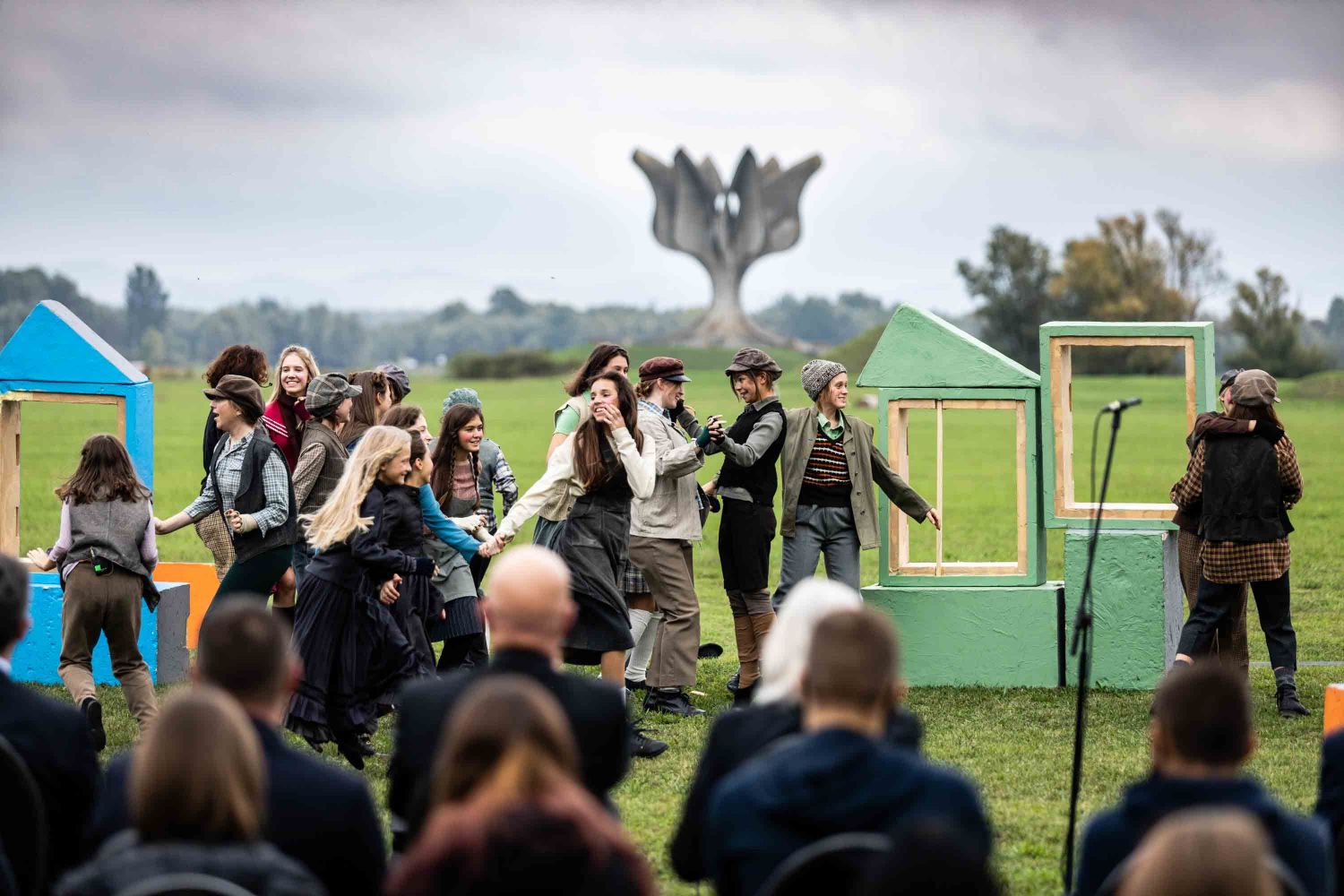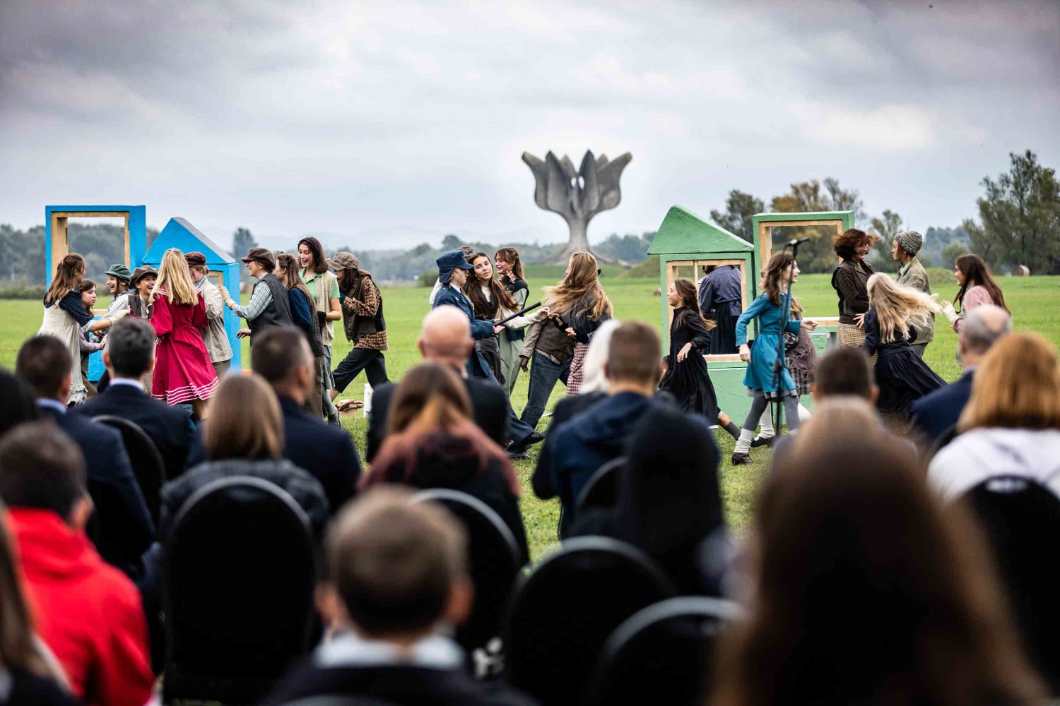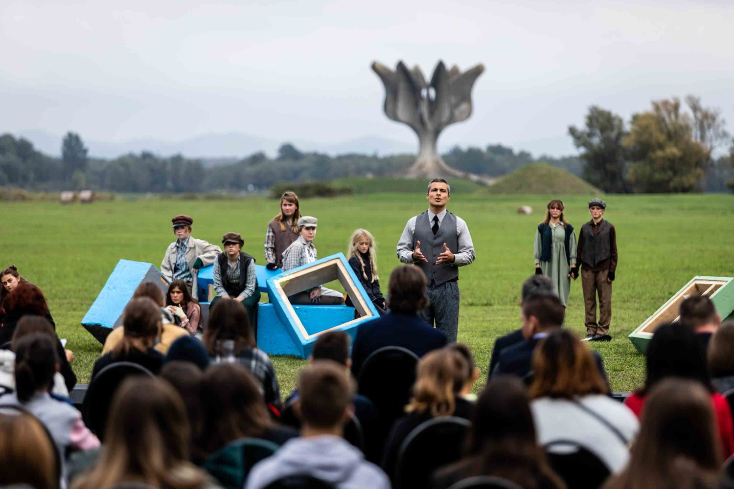 Opera se odigrala u gotovo nestvarnoj atmosferi, na livadi pred Memorijalnim centrom Jasenovac, svega par stotina metara od „Kamenog cvijeta“, koji je kao pozadina bio dio scenografije. Predstavi su nazočili NJ.E. Ilan Mor, veleposlanik Izraela koji nam je vidno potresen nakon izvedbe rekao: „Ovo je za mene bilo jedno vrlo emocionalno iskustvo, ali sam sretan kada vidim koliko je mladih došlo pogledati Brundibár, priču s važnom porukom, da se zajedništvom svako zlo može zaustaviti.“ Nadalje, bili su tu i Jaroslav Kamas, konzul Republike Češke, Anna Rich, predstavnica UNHCR-a u Hrvatskoj uz kolegu Jana Kapića, Nathalie Linow, savjetnica za kulturu veleposlanstva Savezne Republike Njemačke, Estelle Halimi – Dagron, savjetnica za suradnju i kulturnu djelatnost veleposlanstva Francuske, Ivan Marić, izaslanik ministra Gordana Radmana Grlića, Dubravka Đurić Nemec, posebna savjetnica ministrice Nine Obuljen Koržinek, Marija Mačković, izaslanica Hrvatskog sabora, Dženana Kalamujić, izaslanica zagrebačkog gradonačelnika i Ivona Nemeth, izaslanica župana Sisačko – moslovačke županije. Ispred veleposlanstva SAD-a bili su Cameron Millard, Drew Giblin, Vanja Ratković i Mark Fleming koji je nakon izvedbe izrazio svoj ponos i zadovoljstvo što je mogao poduprijeti ovako važan događaj, te istaknuo kako će i u budućnosti nastojati podupirati projekte usmjerene k promicanju tolerancije.