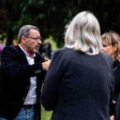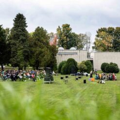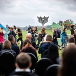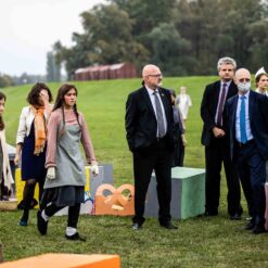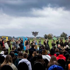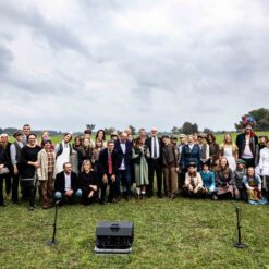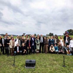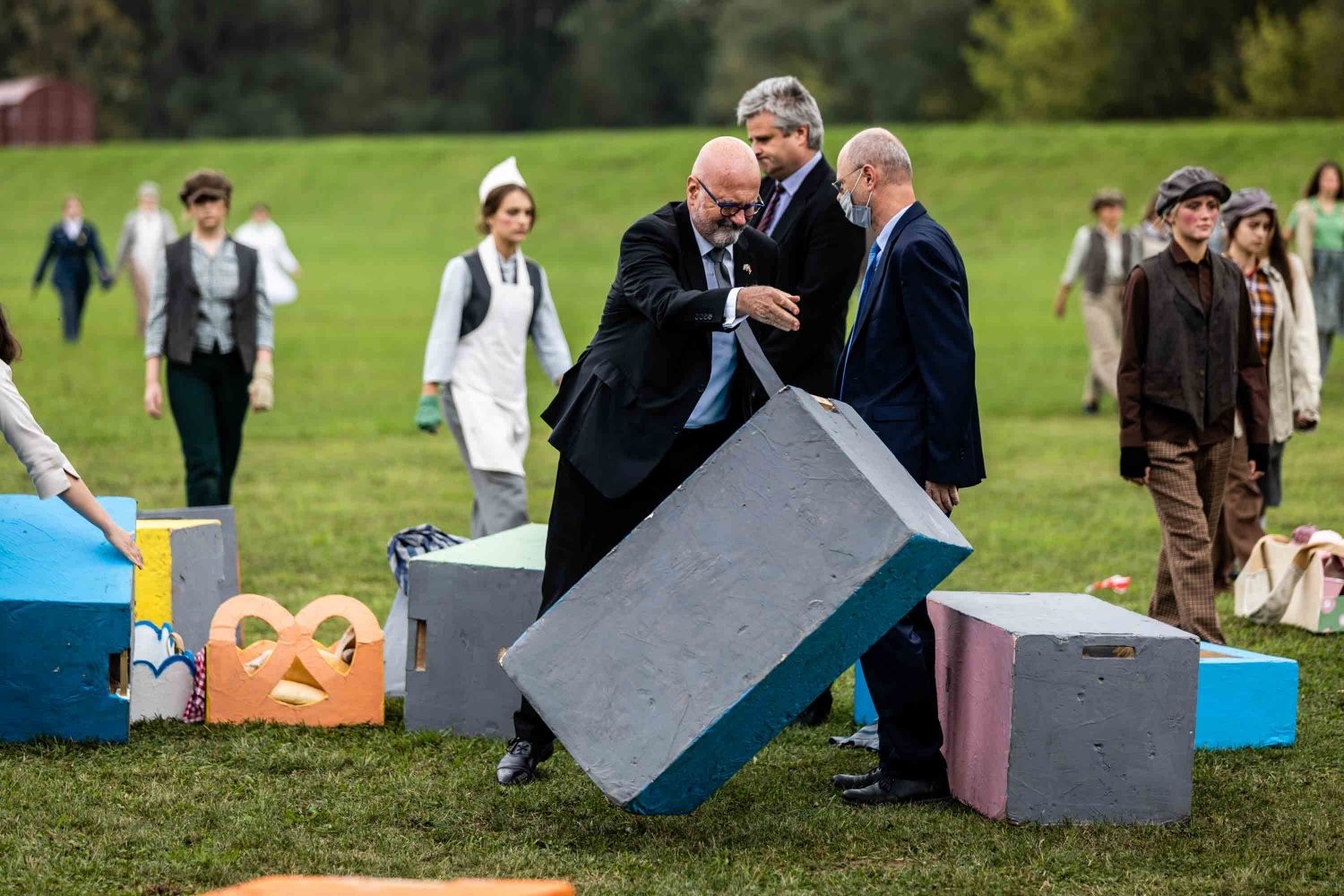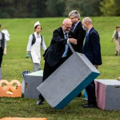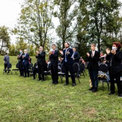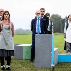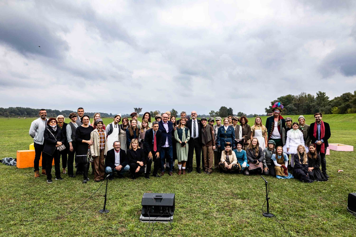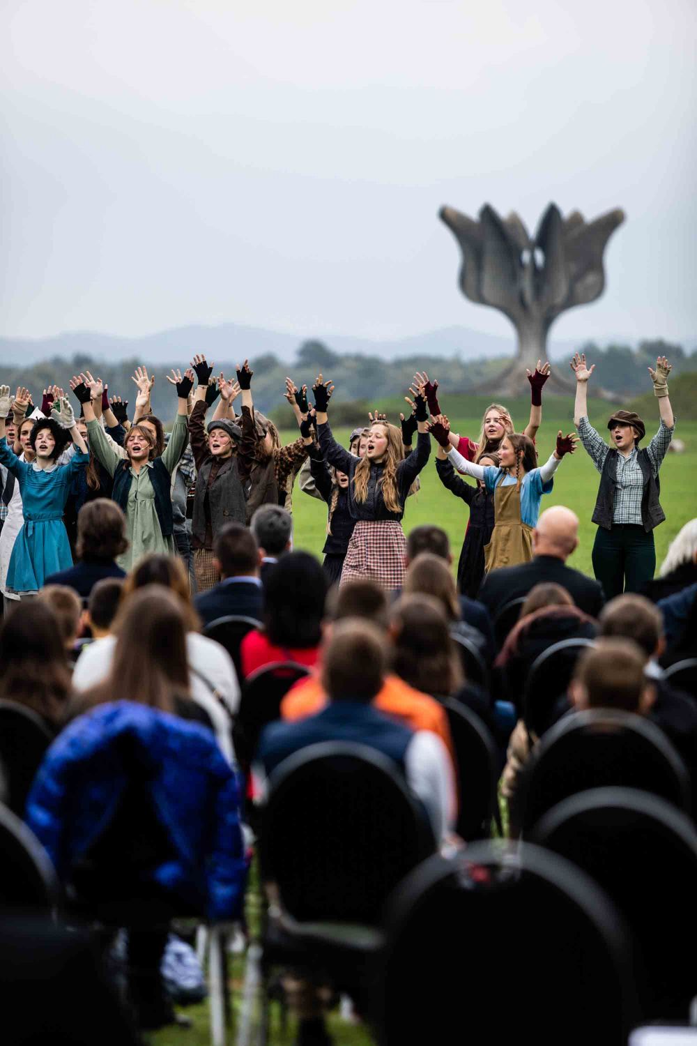 Opera se odigrala u gotovo nestvarnoj atmosferi, na livadi pred Memorijalnim centrom Jasenovac, svega par stotina metara od „Kamenog cvijeta“, koji je kao pozadina bio dio scenografije. Predstavi su nazočili NJ.E. Ilan Mor, veleposlanik Izraela koji nam je vidno potresen nakon izvedbe rekao: „Ovo je za mene bilo jedno vrlo emocionalno iskustvo, ali sam sretan kada vidim koliko je mladih došlo pogledati Brundibár, priču s važnom porukom, da se zajedništvom svako zlo može zaustaviti.“ Nadalje, bili su tu i Jaroslav Kamas, konzul Republike Češke, Anna Rich, predstavnica UNHCR-a u Hrvatskoj uz kolegu Jana Kapića, Nathalie Linow, savjetnica za kulturu veleposlanstva Savezne Republike Njemačke, Estelle Halimi – Dagron, savjetnica za suradnju i kulturnu djelatnost veleposlanstva Francuske, Ivan Marić, izaslanik ministra Gordana Radmana Grlića, Dubravka Đurić Nemec, posebna savjetnica ministrice Nine Obuljen Koržinek, Marija Mačković, izaslanica Hrvatskog sabora, Dženana Kalamujić, izaslanica zagrebačkog gradonačelnika i Ivona Nemeth, izaslanica župana Sisačko – moslovačke županije. Ispred veleposlanstva SAD-a bili su Cameron Millard, Drew Giblin, Vanja Ratković i Mark Fleming koji je nakon izvedbe izrazio svoj ponos i zadovoljstvo što je mogao poduprijeti ovako važan događaj, te istaknuo kako će i u budućnosti nastojati podupirati projekte usmjerene k promicanju tolerancije.