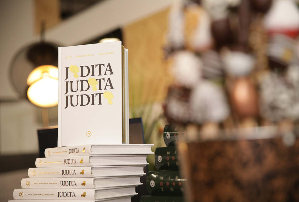 Svečana promocija događa se u godini kada u hrvatskoj obilježavamo 500. obljetnicu objavljivanja Judite Marka Marulića, oca hrvatske književnosti, a navršava se i dvadeset godina otkako je Miro Gavran objavio roman Judita, koji je do sada imao čak 12 izdanja na hrvatskome jeziku te 12 izdanja u prijevodima diljem svijeta. Knjiga ukoričuje biblijski izvornik, koji je nadahnuo Marulića i Gavrana, Marulićev ep i Gavranov roman, čime se otvara novi prostor za intertekstualnu igru.