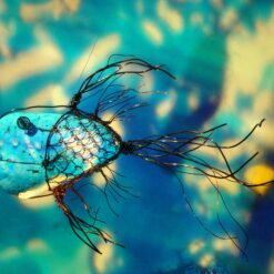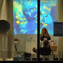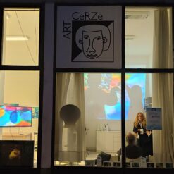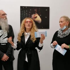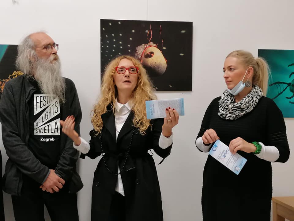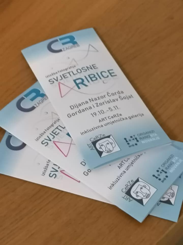 A kada se udruže iznimne umjetničke osobnosti kakve su Dijana Nazor Čorda i bračni i umjetnički par – Gordana Šojat i Zorislav Šojat, nastaje izložbena vizualna senzacija koja je u galerijama u kojima je do sada izlagana obarala sve rekorde posjećenosti. Nastaje prva izložba u novootvorenom galerijskom prostoru CRZ-a, nastaju „Svjetlošću oživljene kamene ribice“. Inicirana likovnom radionicom koju je u svibnju ove godine s korisnicima održala Dijana Nazor Čorda, a kojoj je tema bila animalizam – ribice i ptice, bila je logičan slijed i kompatibilna tema kojom ćemo zaokružiti radno druženje s korisnicima. Dijani Nazor Čorda su se u realizaciji izložbe pridružili Šojatovi – virtuozi svjetlosne umjetnosti, koju su još 2009. započeli s Dijanom suradnju na ovoj neobičnoj, no iznimnoj multimedijalnoj izložbi koja nije samo vizualni doživljaj, već je sinestezija u kojoj se uključuju sva osjetila. Sada, zbog ograničenog kapaciteta galerije i nepotrebnog repetiranja cijelog postava, predstavljana je fotografijama i video animacijom koja nam zorno dočarava čudesnu vizualnu priču smještenu u imaginarni svijet podmorja. Logično, jer glavni akteri su ribice načinjene od kamenja koje je Dijana godinama sakupljala po raznim plažama, a potom oplela bakrenom žicom dobivši tako konačnu formu, kamene ribice koje se nježno klate, viseći sa stropa galerije. A kada su ih Šojatovi osvijetlili bojama putem svoga svjetlozora – projekcijskog uređaja koji stvara svjetlosne projekcije pomoću rukom oslikanih minijatura na staklu, odnosno na leću uređaja čije projekcije nemaju oštre rubove pa ih je moguće kombinirati i slagati tako da se neprimjetno spajaju te se slika širi i gubi na oštrini kako se približava rubovima. Kada su na taj način osvijetlili kamene ribice, one su zaživjele u brojnim nijansama loma svjetlosti i stopile se u čarobnom svjetlosnom podmorju. Potom su, kako bi ih još više oživjeli, dobivene svjetlosne slike pretvorili u animirani film, pa su tako kamene ribice i zaplivale, „krećući se kroz mnoštvo nijansi razigranih boja“ – kako opisuje efekte vlastitog svjetlosnog uređaja i sama Gordana Šojat. Tako su od ready-made objekta, kojeg ja Dijana počela izrađivati još 1999., a koje su joj poslužile i kao glavni motiv ilustracije slikovnice Lidije Dujić „Bajka iz plićaka“, za koju je dobila Pohvalu nagrade „Grigor Vitez“, postale izložbeni eksponati napučujući Galeriju Matice hrvatske u Zagrebu, galeriju Gradske knjižnice J. Šižgorić u Šibeniku, Galeriju Prica u Samoboru i Galeriju Karas u Karlovcu, a sada kao „šlag na kraju“ ili na novome početku, i prvu i jedinu hrvatsku inkluzivnu galeriju Art CeRZe. Pa iako nije predstavljena u integralnoj verziji, već fotografijom i njihovom animacijom, izložba nam i ovim medijem zorno dočarava čudesan Dijanin morski svijet u kojem je svaki eksponat, svaka ribica unikatna, jedinstvena, kao što su jedinstveni i korisnici Centra, kojima je, svakom ponaosob, Dijana darovala fotografiju s potpisom i certifikatom originalnosti svih triju autora. Ovom lijepom gestom završilo je otvorenje izložbe koja je podigla ljestvicu u načinu prezentacije i kvaliteti predstavljanog. Vjerujemo da će Art CeRZe nastaviti istom kvalitetom i zanimljivošću izložbenog sadržaja, a Dijani Nazor Čorda i Gordani i Zorislavu Šojat želimo još puno uspješnih suradnji u inovativnim projektima kojima obogaćuju umjetničku scenu na samo Hrvatske već i svijeta.