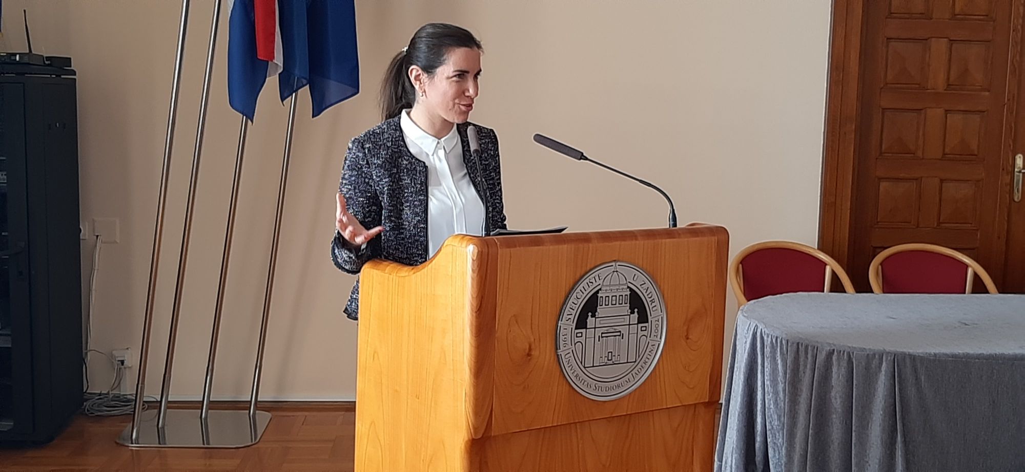 U ime rektorice Sveučilišta u Zadru predavanju i susretu nazočila je prof. dr. sc. Nedjeljka Balić-Nižić, prorektorica Sveučilišta u Zadru te organizatorice izv. prof. dr. sc. Anita Pavić-Pinatrić, voditeljica Austrijske knjižnice dr. Alois Mock i pročelnica Odjela za germanistiku kao i izv. prof. dr. sc. Sanja Knežević, pročelnica Odjela za kroatistiku.