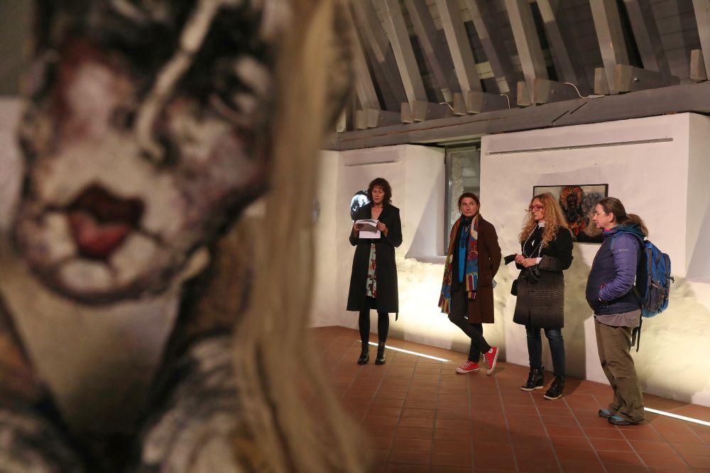 Izložba u cijelosti ili segmentima akceptira višestruki identitet žene, brojne arhetipove i stereotipove kojima su izložene, pokušavajući proniknuti u ženinu bit i krenuti kroz umjetnost u potragu za njezinom stvarnom ulogom i značenjem u društvu u kojem živimo. Svojevrsni je hommage ženi i samoj Femininologiji, sedam godina njezina održavanja, predstavljen djelima umjetnica koje su u ovih sedam godina sudjelovale u ovom izložbenom projektu. To su: Antonija Balić Šimrak, Andreja Hojnik Fišić, Koraljka Kovač, Ivana Ožetski, Ana Sladetić i Ksenija Turčić iz Hrvatske, Jana Maneva Čuposka, Nataša Milovančev, Marina Kocareva Ranisavljev i Ana Temkova iz Sj. Makedonije, Saša Bezjak, Andreja Eržen, Irena Gayatri Horvat, Anka Krašna i Slađana Matić Trstenjak iz Slovenije, te Lydia Patafta iz Slovačke. U impresivnom prostoru srednjovjekovne kule, poput zarobljenih djeva, a oslobođenih u vlastitoj iskrenoj priči o sebi, o ženi. O izložbi je govorila naravno sama autorica, a projekt je predstavila i otvorila Danaja Batinič, voditeljica Lajerjeve hiše.