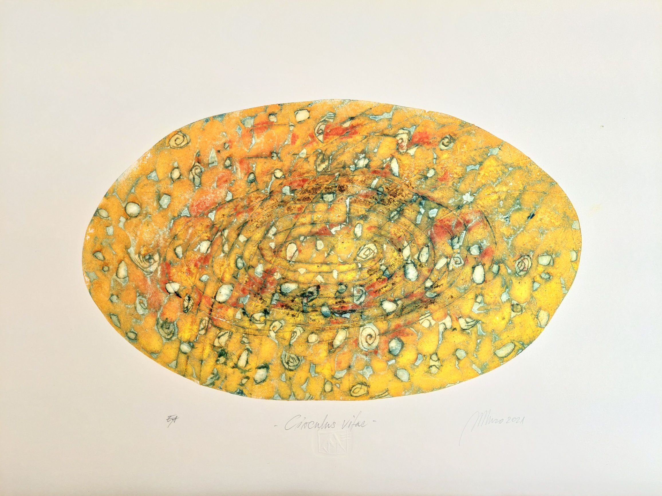 Inspiriran bogatstvom i ljepotom života te njegovim beskrajnim oblicima i bojama, Marinko Jelača utjelovljuje cikličnost života u nizu gravura u boji na lesonitu. Kontinuirano rađanje novog i drugačijeg pruža beskrajne mogućnosti u interpretaciji kruga života. Oblikujući niz matrica na kojima bilježi subjektivnu interpretaciju osobnih doživljaja, iskustava i emocija umjetnik stvara rapsodiju boja i oblika koji bude reminiscenciju na arhetipske forme. Vrijeme prolazi i život se mijenja, a u skladu s njime Marinko Jelača reagira na promjene i nova iskustva. Matrice kao temelj stvaranja koje, kako sâm umjetnik kaže, imaju “isti, a možda i veći značaj od samog otiska na grafičkim listovima”, postaju glavni fokus ciklusa. Iako su matrice sredstvo u procesu nastanka (dok se završnim radom smatra otisak), upravo u njima leži bogatstvo kreacije i oblikovanja, a tragovi samog djelovanja metafora su života u nastanku. Tako postupci tijekom stvaralačkog procesa postaju odraz života i nas samih – sa svim prednostima i nedostacima.