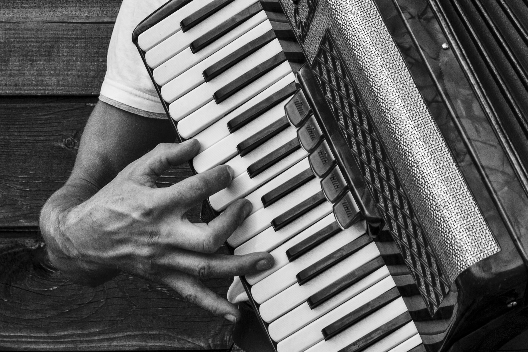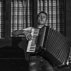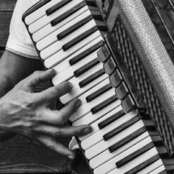 Slavica uspijeva kadrirati i fotografski zabilježiti scene u kojima aktere „samo što ne čujemo“. To postiže suradnjom sa svakim ponaosob. No, ovdje se ponekad događaju i iskliznuća iz konvencija, pa imamo čak i obnaženog svirača. Instrument mu prekriva dijelove tijela koje (malo)građanski stav o svijetu ne podnosi.