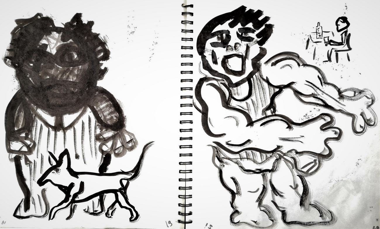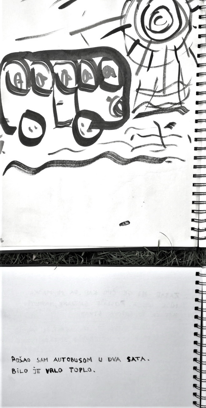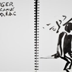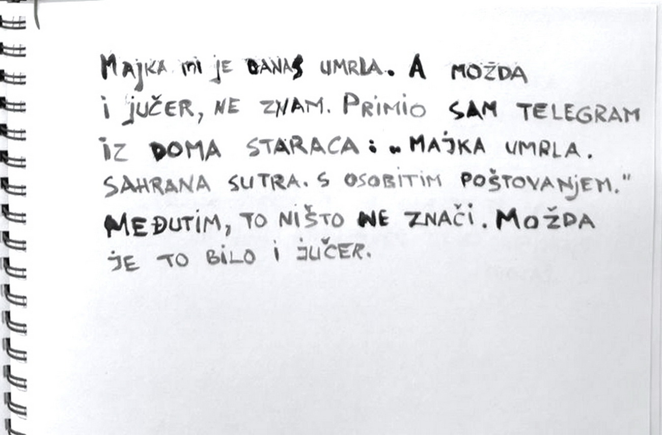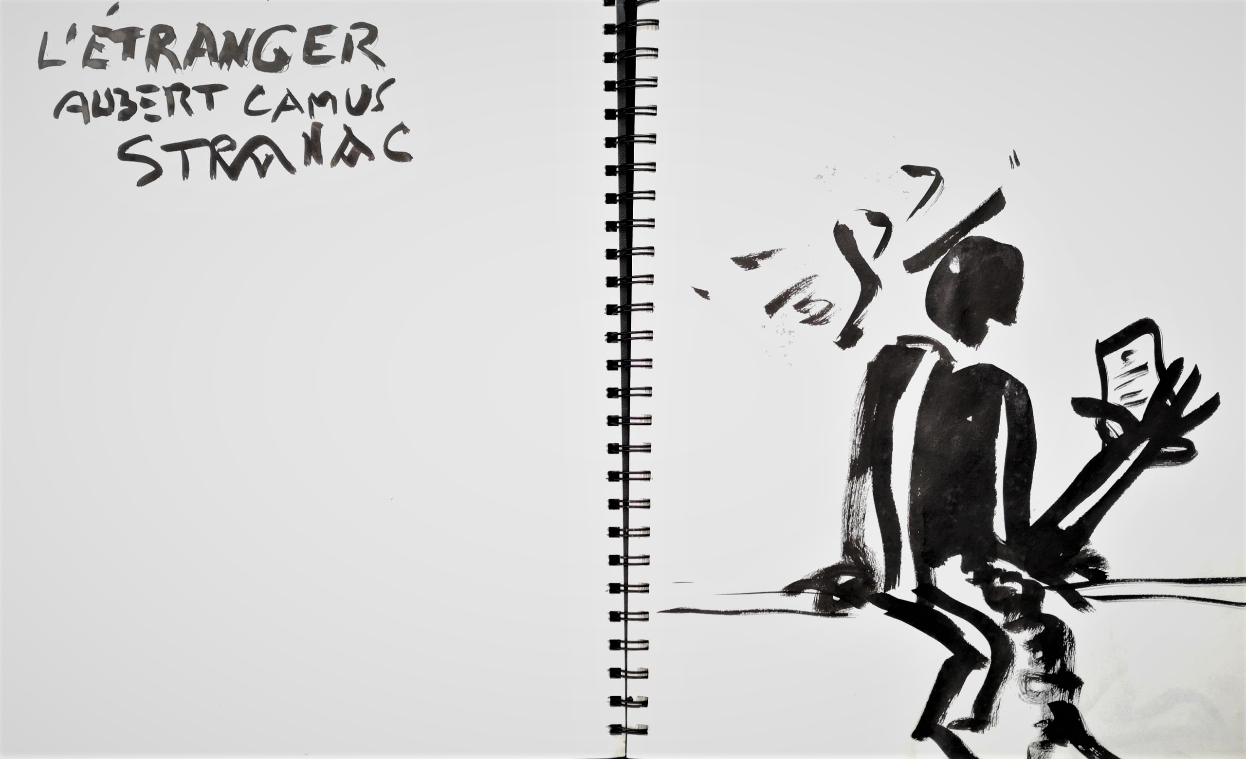 Glavni, inicijalni dio projekta predstavljaju autorske knjige, gdje nalazimo crteže i slovne zapise izvedene na listovima bilježnica/blokova. Već od prvog, tako sklopljenog diptiha, navedeni smo na literarno djelo, roman Stranac, koji je 1940-tih godina napisao Albert Camus. U sprezi s egzistencijalizmom, ovaj roman jedan je od najboljih prikaza apsurda ljudske egzistencije. Krunislav Stojanovski prati pa predstavlja niz događanja, elemente sadržaja knjige. On niže izabrane sekvence krokijima izvedenim gestualnim crtežima. Oni su svojevrsni ilustrativni materijal. Uz svaki crtež nalazimo zapis, izvatke, citate literarnog djela. Ovu situaciju možemo pratiti kroz ponuđene autorske knjige postavljene na postamentu. Ovdje možemo listati dvije knjige: možemo proizvoljno prelistavati, pa se ilustracije i tekstovi ne moraju slagati. Iste scene nalazimo i na zidu, ali su ondje određene: uz svaki crtež ide određeni tekst. Njegovi, rukom ispisani tekstovi, asocijativno su oblikovani, kako autor kaže: „…kao haiku imitacije.“ Razlog za to je činjenica da oni ne poštuju u potpunosti kanon te vrste poezije.
