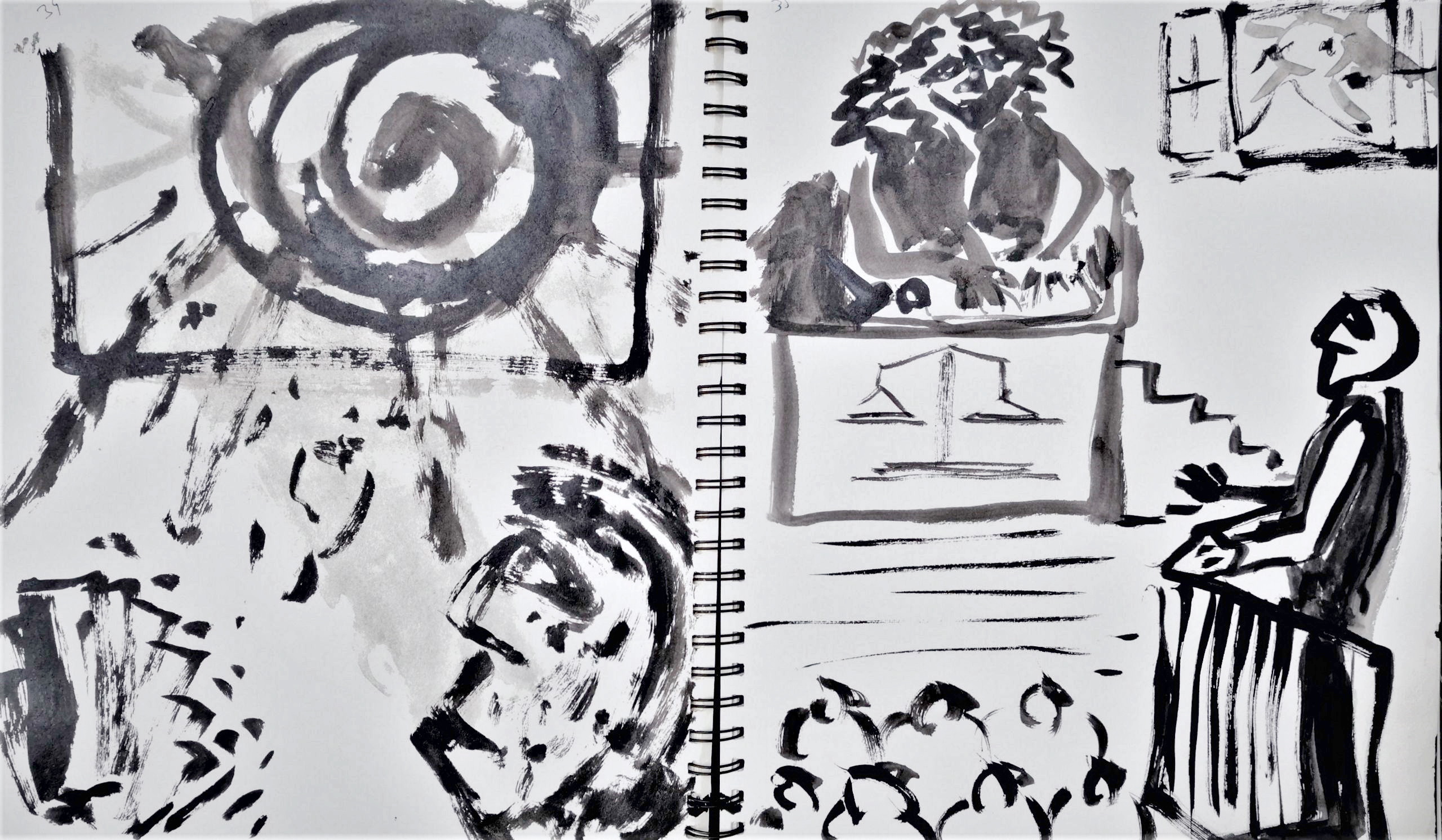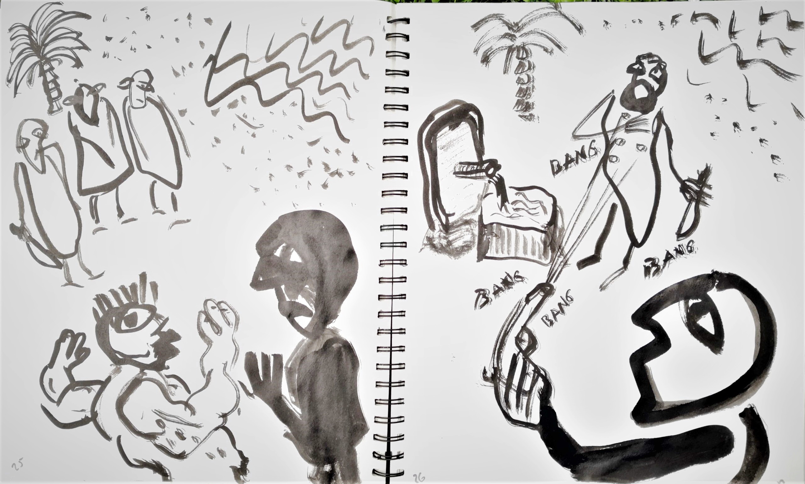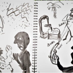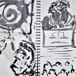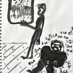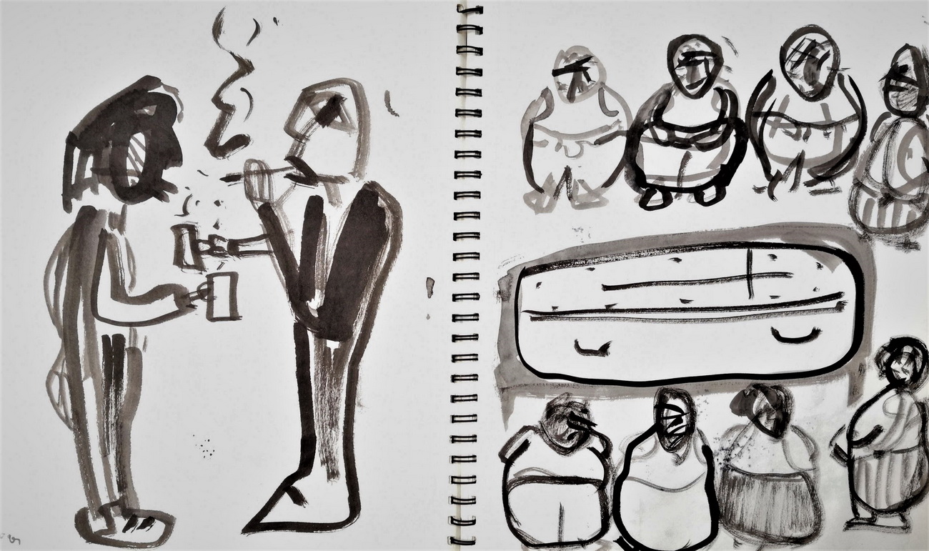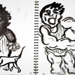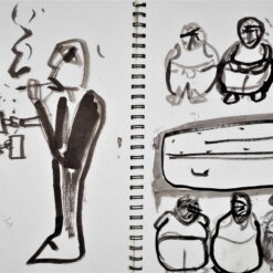 Glavni, inicijalni dio projekta predstavljaju autorske knjige, gdje nalazimo crteže i slovne zapise izvedene na listovima bilježnica/blokova. Već od prvog, tako sklopljenog diptiha, navedeni smo na literarno djelo, roman Stranac, koji je 1940-tih godina napisao Albert Camus. U sprezi s egzistencijalizmom, ovaj roman jedan je od najboljih prikaza apsurda ljudske egzistencije. Krunislav Stojanovski prati pa predstavlja niz događanja, elemente sadržaja knjige. On niže izabrane sekvence krokijima izvedenim gestualnim crtežima. Oni su svojevrsni ilustrativni materijal. Uz svaki crtež nalazimo zapis, izvatke, citate literarnog djela. Ovu situaciju možemo pratiti kroz ponuđene autorske knjige postavljene na postamentu. Ovdje možemo listati dvije knjige: možemo proizvoljno prelistavati, pa se ilustracije i tekstovi ne moraju slagati. Iste scene nalazimo i na zidu, ali su ondje određene: uz svaki crtež ide određeni tekst. Njegovi, rukom ispisani tekstovi, asocijativno su oblikovani, kako autor kaže: „…kao haiku imitacije.“ Razlog za to je činjenica da oni ne poštuju u potpunosti kanon te vrste poezije.