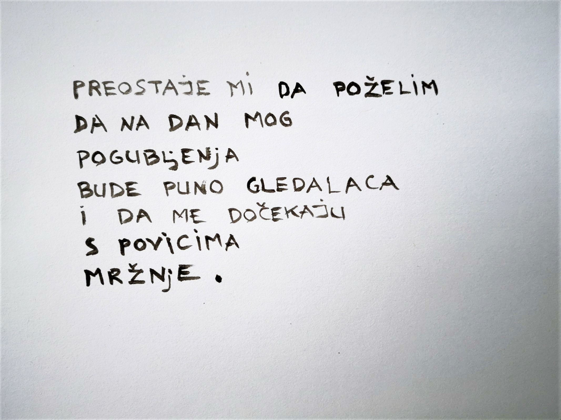 U startu razumijemo umjetnika: danas je smiješno i ponižavajuće slušati ili čitati službene medije koji se ponašaju kao da se ništa ne događa. No, oni ne preskaču uniformirano, ciljano sijanje straha i nesigurnosti, uz uvjeravanje o opasnostima „gripe s reklamom“, ali samo s jedne pozicije, bez polemike ili nekog drugog stava, upita, sumnje