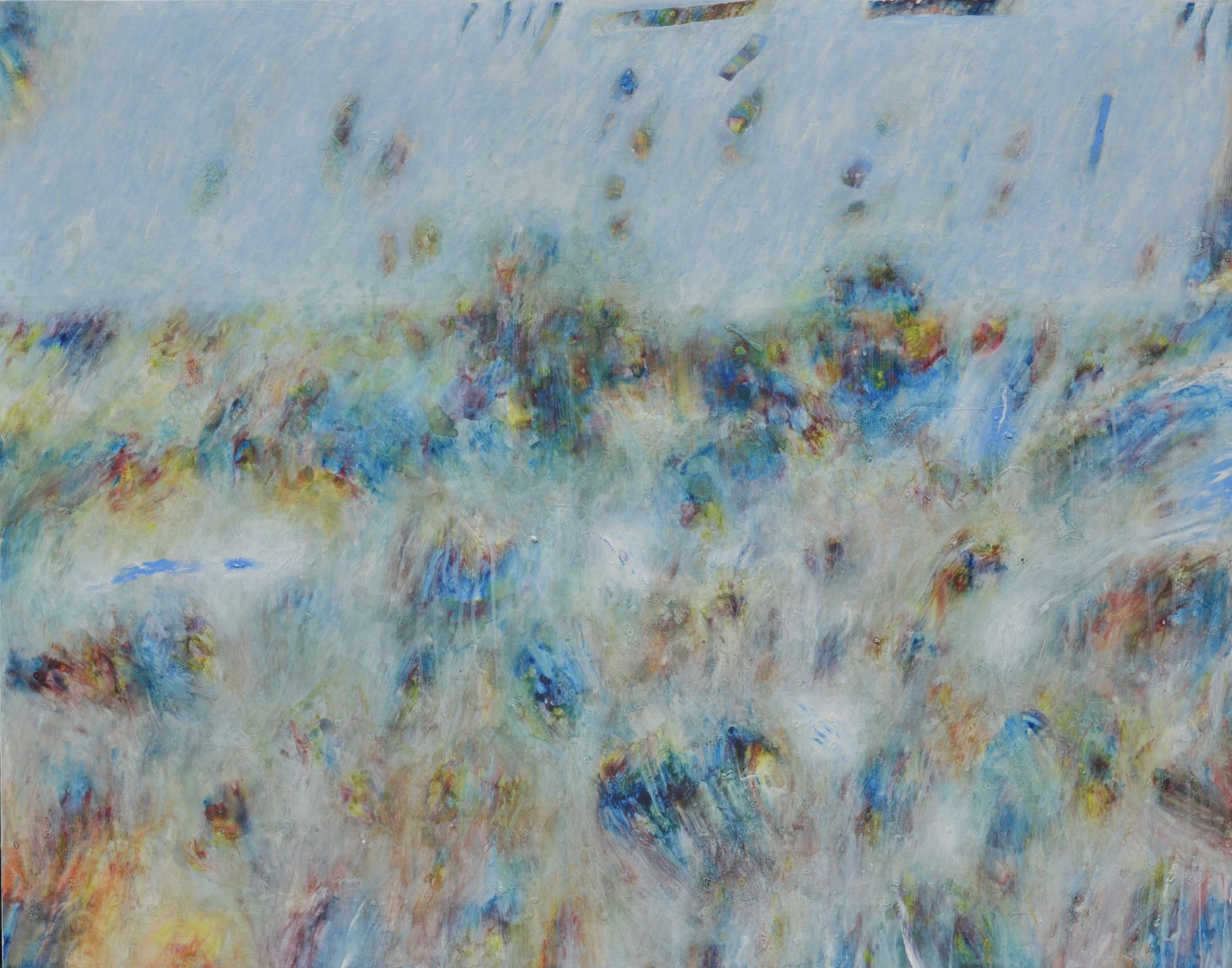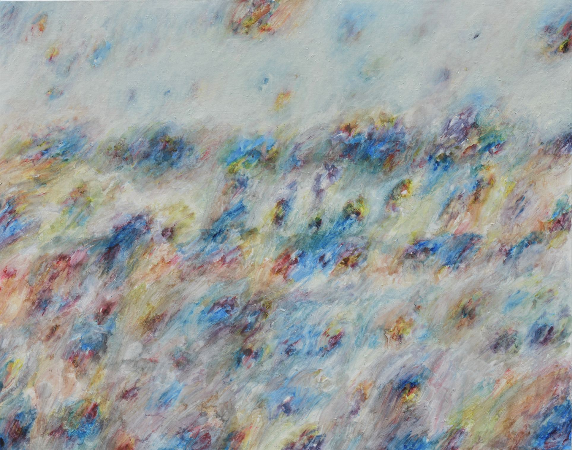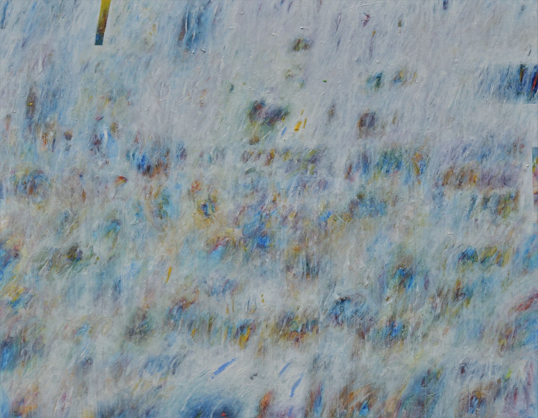 Tako je i u neposredno proteklom razdoblju, usprkos koroni i orijentiranosti autora na vlastiti prostor, prostor atelijera, slikar kreirao niz slika, naziva Mediteran s karakterističnim kolorom u kojem dominiraju nakupine bijele i plave boje uz smeđu, nebo, more i zemlja