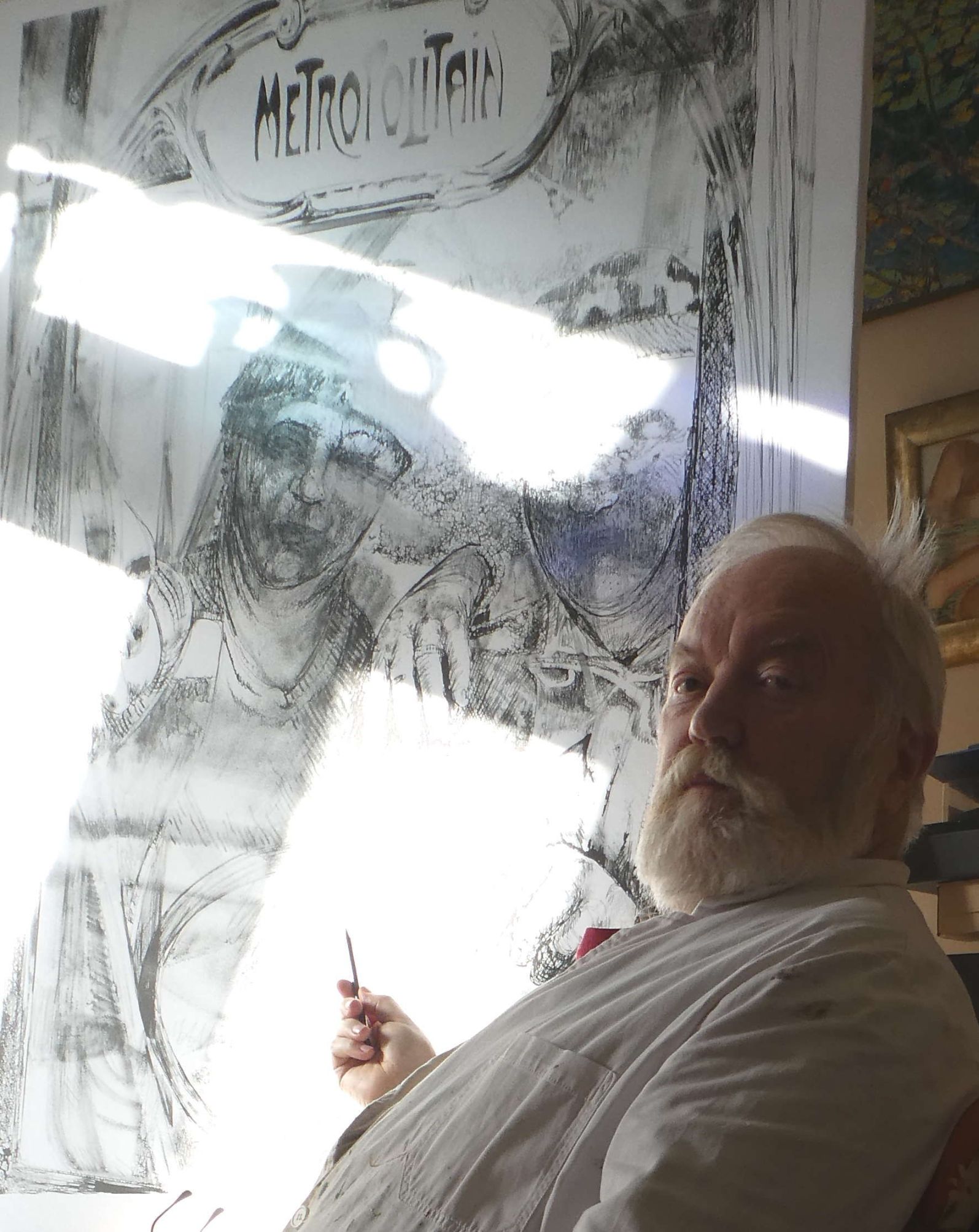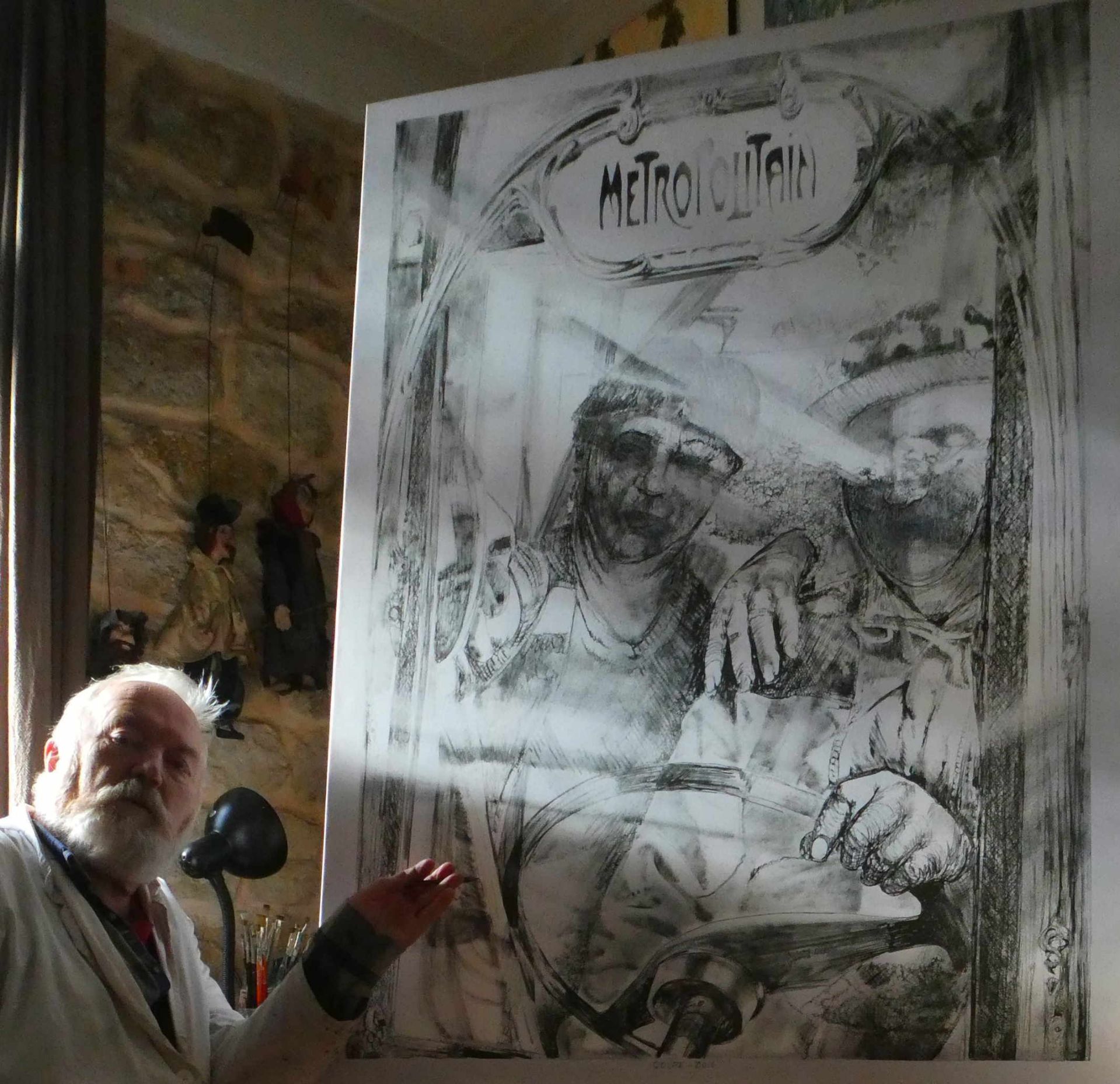 Pričao sam ovim našim domačim majstorima, što režu drva po kućama, da je toga bilo i u Parizu nekad. I onda su oni poželjeli, da režu ljudima u Parizu drva za ogrijev i romantiku u kaminima. Nisam ni znao da će doći do ovakvog bezobraznog poskupljenja plina, pa su sad drva interesantna. I ja sam onda moje majstore virtualno postavio u Pariz tako da sam nacrtao na njihovom stroju ulaz u pariški metro….i uzput likovno razmahao crtež.