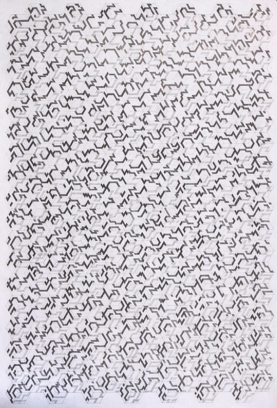 Ovi radovi nastali su u recentnom vremenu. Promatrajući ih u slijedu, čine se dijelovima istog obreda. Sliko-crteži nastaju gradnjom, ponavljanje poteza i oblika, sklapanjem dijelova različitih gradacija precizne crtačke izvedbe. Umjetnik formira umrežene sustave samozadanim kanonom slaganja, gustoćom rasporeda elemenata, mutacijama oblika, ali i pomoću uvedenog kolora. Segmenti se samo na prvi pogled ponavljaju. Poput partiture za simfoniju: pažljiviji promatrač uočit će mutacije unutar ritmiziranih, titravih površina. Podloga svih radova poštovana je istovrijedno motivu. Linija se pojavljuje kao samostalna činjenica, nosilac oblika. Nekoliko radova nudi iluziju trodimenzionalnih formacija. Umjetnik se igra perspektivom. Miješa planove i uvjetuje ih ritmom aktiviranim dispozicijom elemenata. Kompozicije većine radova, intervencijama, uklapanjem, postaju forme na rubu ravnoteže. Pored igre detaljima, kompozicija cjeline na nekim je radovima dezintegrirana postupkom segmentiranja dijelova površina. Ponekad smislene isječke autor stavlja u međuodnos unutar formata pa ponavljani slijed oblika opet inicira ritam. Materijal je tretiran istovrijedno obliku, a odnos prema obama krajnje je intimistički. Umjetnik tako kreira drhtave, minuciozne, apstraktne hologramske zapise.