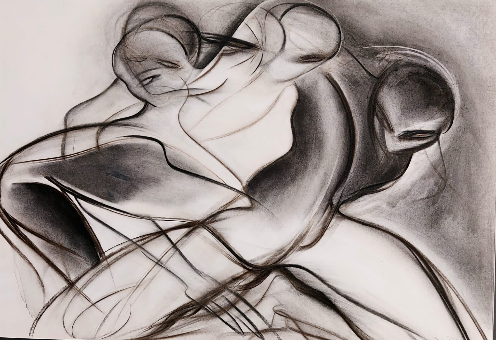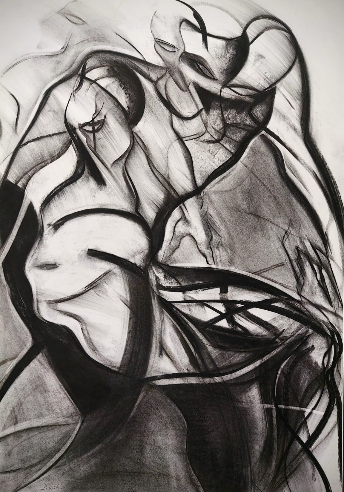Tijela izviru iz sivkaste pozadine ili iz sivoga oblaka, ostavljajući ponegdje dojam utvare, prozirnog duha, vječno zarobljeni kontinuiranim kretanjem, zagrljena, u trenucima predaha, u žestokom sučeljavanju i dodiru.