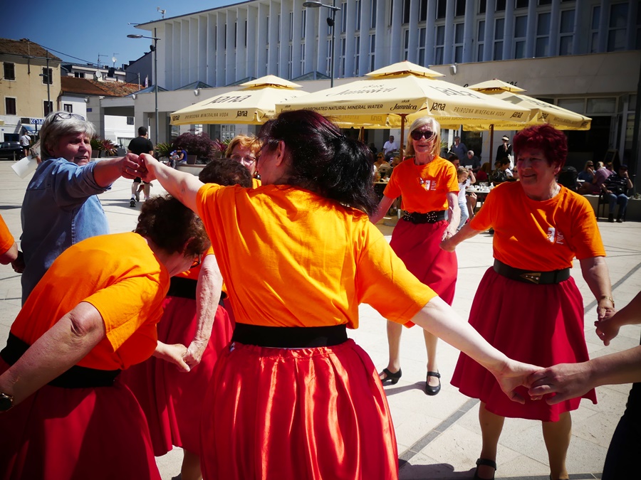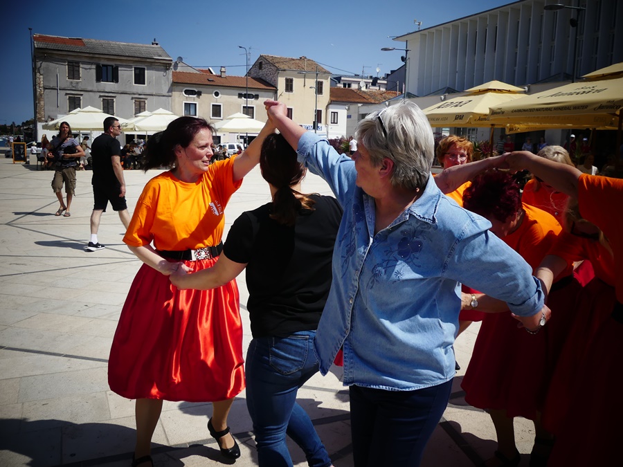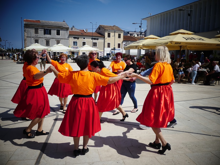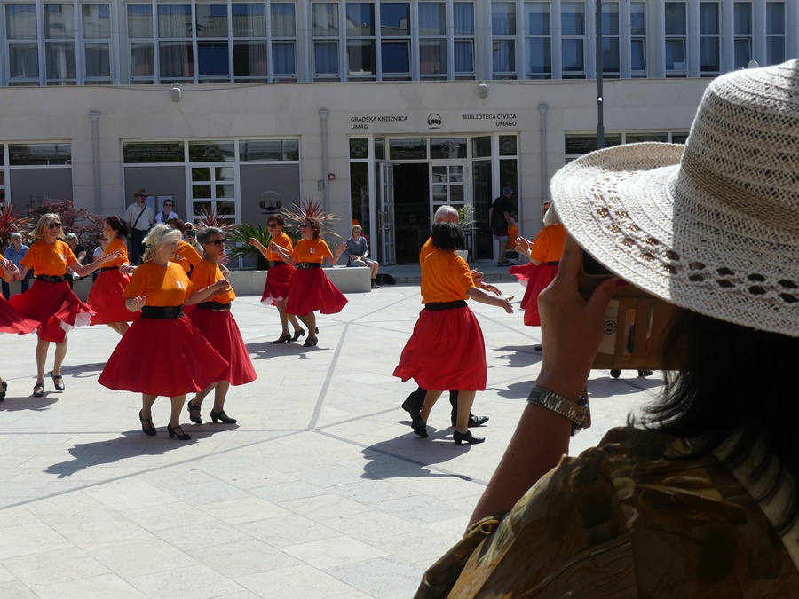 Potpuno novi umaški trg, Trg 1. svibnja, ugostio je članove plesne skupine Učilišta za treću životnu dob “Zvjezdice 50+”. Ekipa je dobila priliku da pokaže svoje plesno umijeće, uz ambiciju da mladi naraštaji upoznaju, zavole i sačuvaju od zaborava istarske plesove i napjeve, te ih podsjete kako je nekad bilo puno više plesnih večeri. Iako je bilo vrlo vruće i sparno, Zvjezdice i Zvjezdani nisu se dali smesti u plesnom naumu. Kibici sa strane znali su to nagraditi gromoglasnim bodrenjem i euforičnim aplauzom potaknuti plesače da pruže sve od sebe, a bogme su imali štošta za pokazati i na tome valja čestitati. Jedna lijepa priča se vratila u Umag i veselimo se što smo bili njen dio.