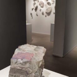 Iako je diplomirao slikarstvo, od samih početaka Anton Vrlić u svom izričaju koristi staklo integrirajući ga na najrazličitije načine u svoj rad, a posljednjih 30-ak godina posvetio se staklu i kao samostalnom mediju. Izložba “Janus” predstavlja iznimno zanimljiv splet životnih i značenjskih okolnosti koje su izražene u nizu staklenih skulptura te radova izvedenih u paus papiru. Kao osnovno gradivno sredstvo Anton Vrlić koristio je staklene ploče koje su godinama padale s pročelja zagrebačke Galerije Gradec, a koje je oblikovao i dizajnirao autorov profesor i mentor Raoul Goldoni. U dužem vremenskom periodu Vrlić je sakupio preko tonu staklenih ploča koje je potom preoblikovao u nove vrijednosti izražene kroz reljef i pune forme. Radovi u staklu nastali su termičkom obradom u peći, potom su rezani i polirani kako bi se dodatno naglasila uloga svjetla kao gradivnog elementa skulptura. Istovremeno, staklo je kombinirano sa žbukom, pigmentom za zid, a sve zajedno je transformirano u toplini peći čime su do izražaja došla Vrlićeva traganja za nervaturom opne. Površina nije toliko napeta kao kod Goldonija, a kako sâm Vrlić kaže, cilj nije bio pružiti ljudima već dobro poznato, uglađeno i fino staklo, već ostvariti sinergiju i komplementarnost stakla kombiniranog sa žbukom i pigmentom za zid te njihovom transformacijom u peći izraziti sponu između površinskih struktura i svih onih taloženja u nutrini koja nastaju kroz ljudsku povijest i civilizaciju.