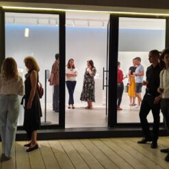 Na otvorenju izložbe nova ravnateljica Gradske galerije Crikvenica Andrea Car Avdagić pozdravila je sve prisutne te izrazila zadovoljstvo što Gradska galerija Crikvenica ima priliku prezentirati recentni ciklus eminentnog hrvatskog umjetnika Antona Vrlića. Kustosica izložbe Sonja Švec Španjol predstavila je prezentirani ciklus staklenih objekata, skulptura, reljefa i crteža posjetiteljima te istaknula kako su prolaznost i transformacija glavne odlike aktualnog ciklusa radova Antona Vrlića pri čemu se bog Janus nametnuo kao logična inspiracija i počelo svega. Ciklusom “Janus” kao da je završen puni krug. Anton Vrlić diplomirao je u klasi profesora Raoula Goldonija koji je, kao i Vrlić, diplomirao slikarstvo, a nakon određenog vremena posvetio se mediju stakla. Vrlić koristi postojeće Goldonijeve staklene ploče kao polazišnu točku i procesom obrade vatrom daje im trajnost, a vlastitim oblikovanjem unosi novu estetsku vrijednost. I tako simbolika Janusa dobiva svoj puni smisao kroz splet prošlosti i sadašnjosti, funkcije i forme, namjere i slučajnosti, postojećeg i novostvorenog utjelovljenog u grubo estetiziranoj staklenoj formi. Eksperimentiranjem, istraživanjem, ogoljivanjem i rađanjem novih oblika iz već postojećih te obilježenih patinom vremena, Anton Vrlić oblikuje staklene i papirnate objekte koji promjenom okolnosti i konotacija rađaju nove vizure i sadržaje, dok duh prošlosti i energija sadašnjosti utjelovljuju neminovnu prolaznost. Umjetnik Anton Vrlić pozdravio je sve prisutne, zahvalio Gradskoj galeriji Crikvenica, ravnateljici Andrei Car Avdagić i kustosici Sonji Švec Španjol na ugodnoj i profesionalnoj suradnji, izrazio je zadovoljstvo realizacijom izložbe te najavio kako ove godine odlazi u mirovinu i planira u narednim godinama još aktivnije posvetiti se umjetničkom stvaralaštvu i izložbama. Ravnateljica Andrea Car Avdagić proglasila je izložbu otvorenom.