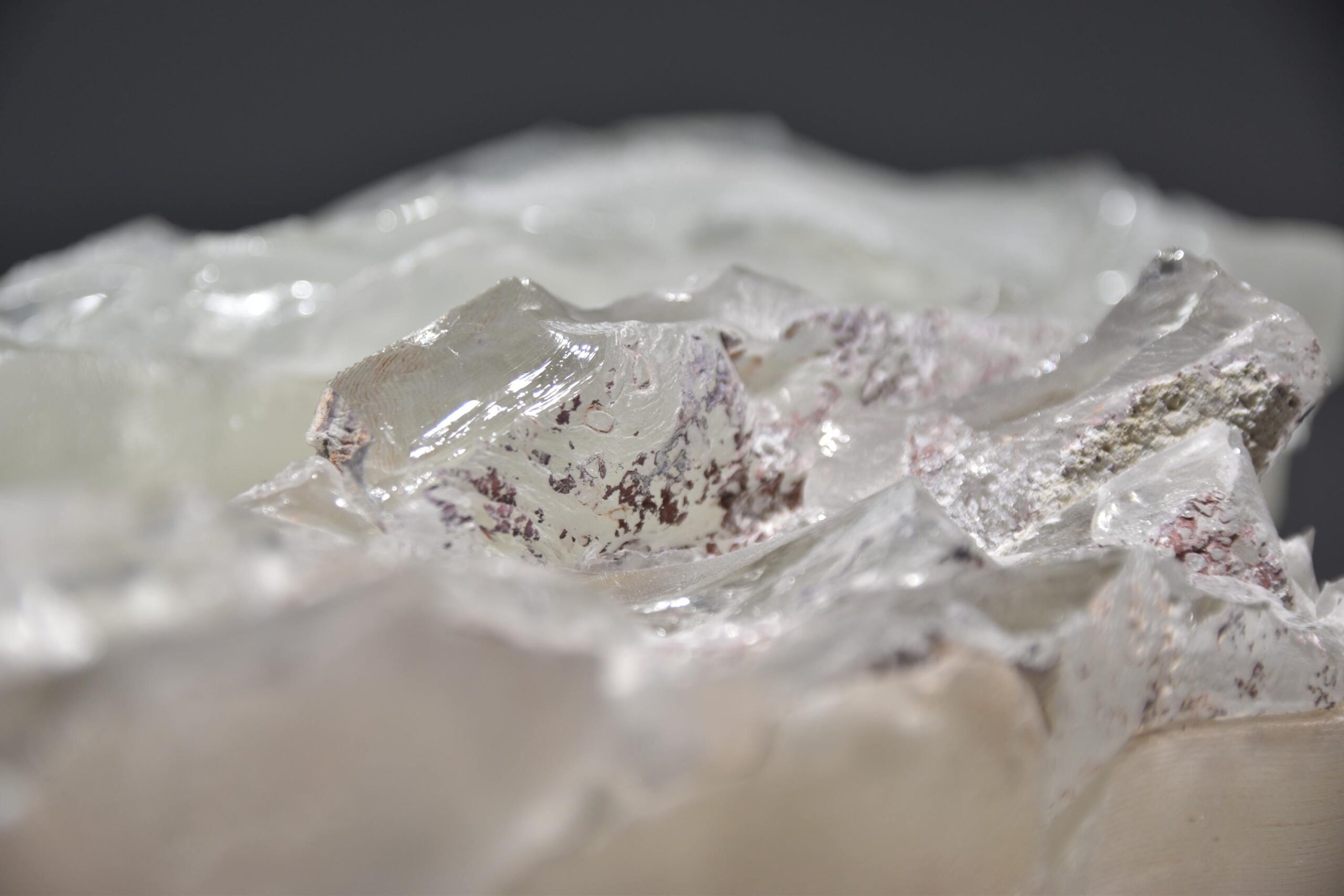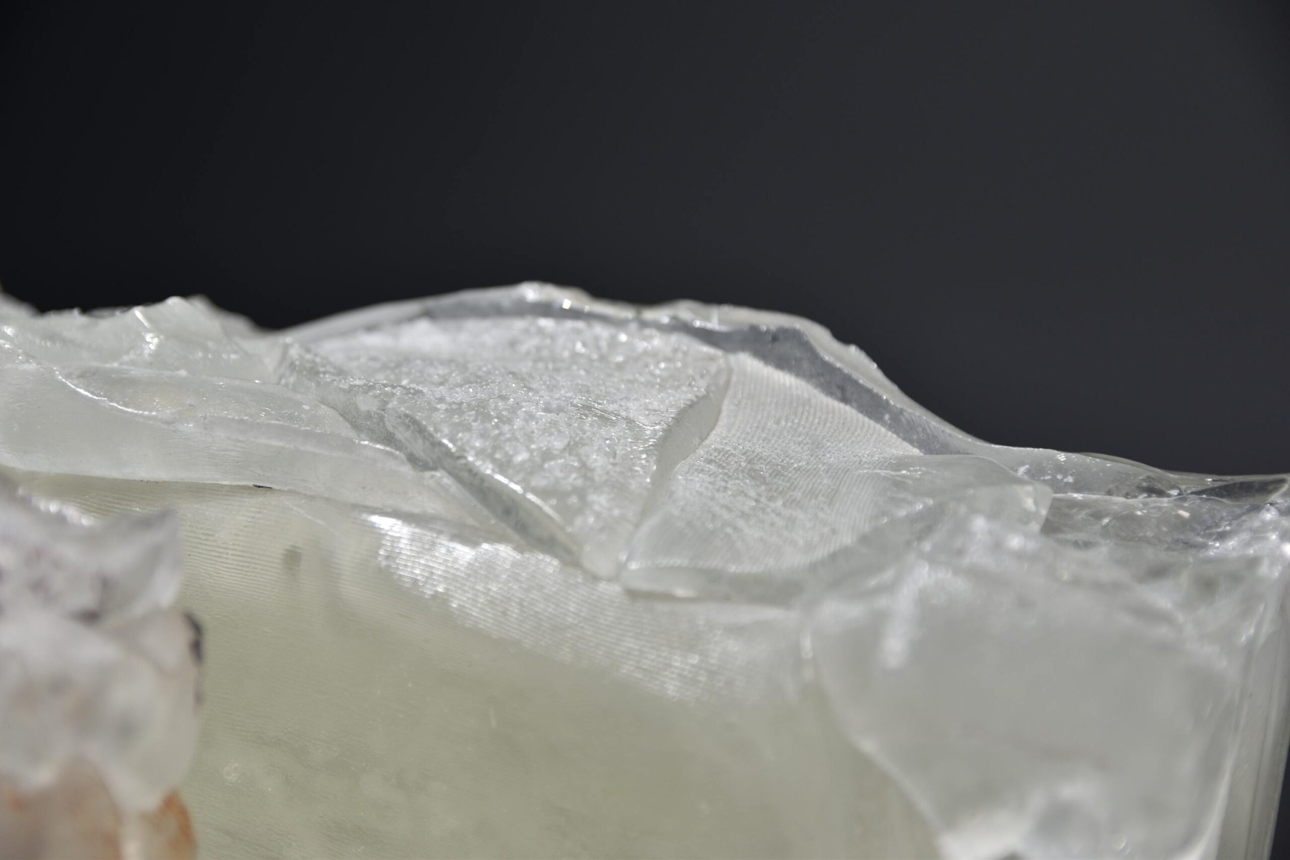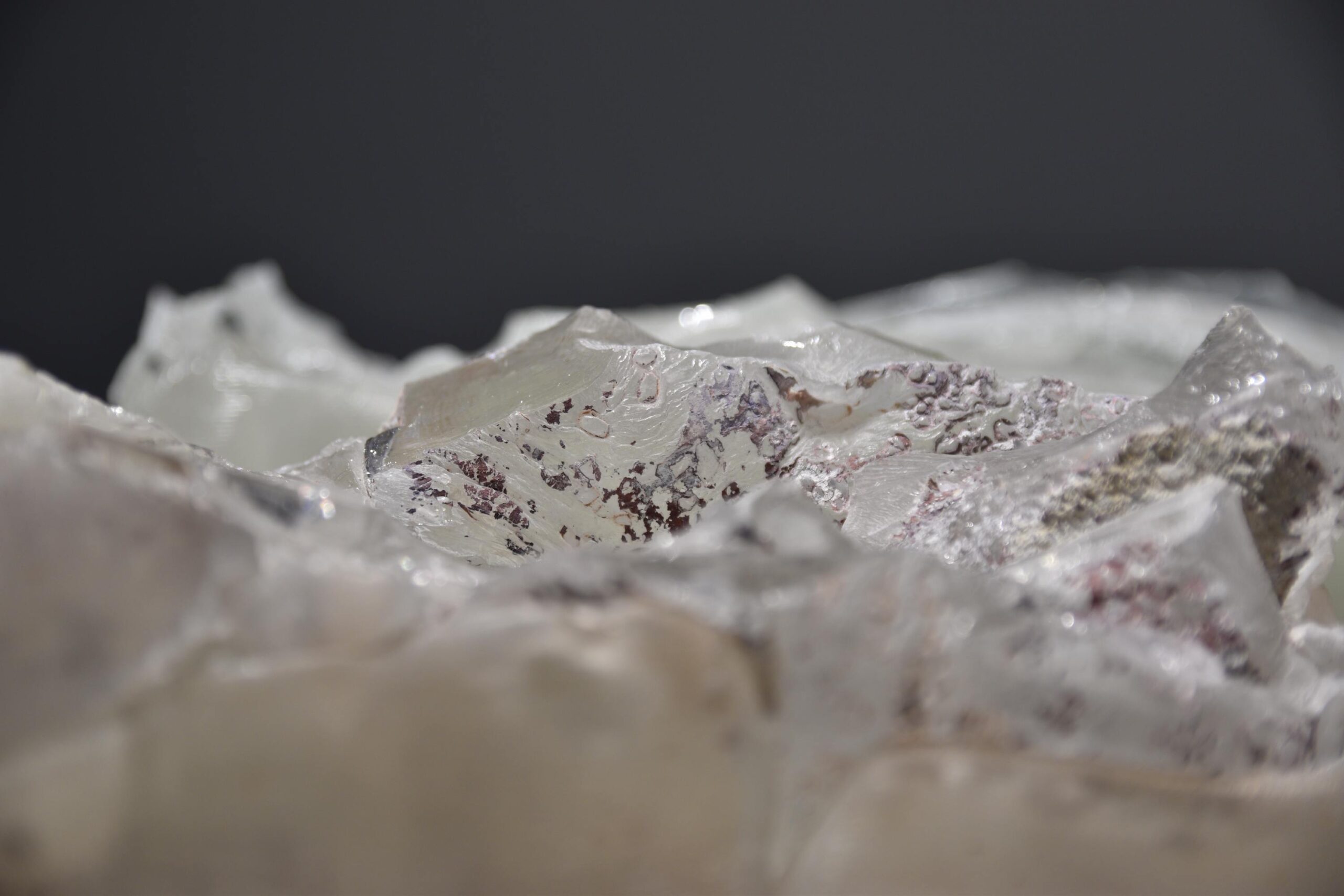 Djela u staklu su vrlo često komprimirana, zbijena, sažeta i kompaktna, a unutar jednog staklenog objekta pomnim promatranjem otkrivamo cijeli niz različitih sadržaja i događanja koja djeluju poput unutarnjih misaonih svemira. Neovisno je li riječ o suštinski organskim ili geometrijskim oblicima, oni u svojoj surovosti tj. neobrađenosti naprosto intrigiraju, plijene pogled promatrača i pozivaju na duže promatranje i istraživanje materije. Iako je svaki rad u potpunosti samodostatan, autor ih vrlo često postavlja u smislene kompozicije od dva ili više objekta čime se rađa nova komunikacija i dinamika samih djela. Sa svim svojim nesavršenostima objekti djeluju iskustveno i sadržajno poput arhetipskih formi koje bude sjećanja iz naše kolektivne svijesti.