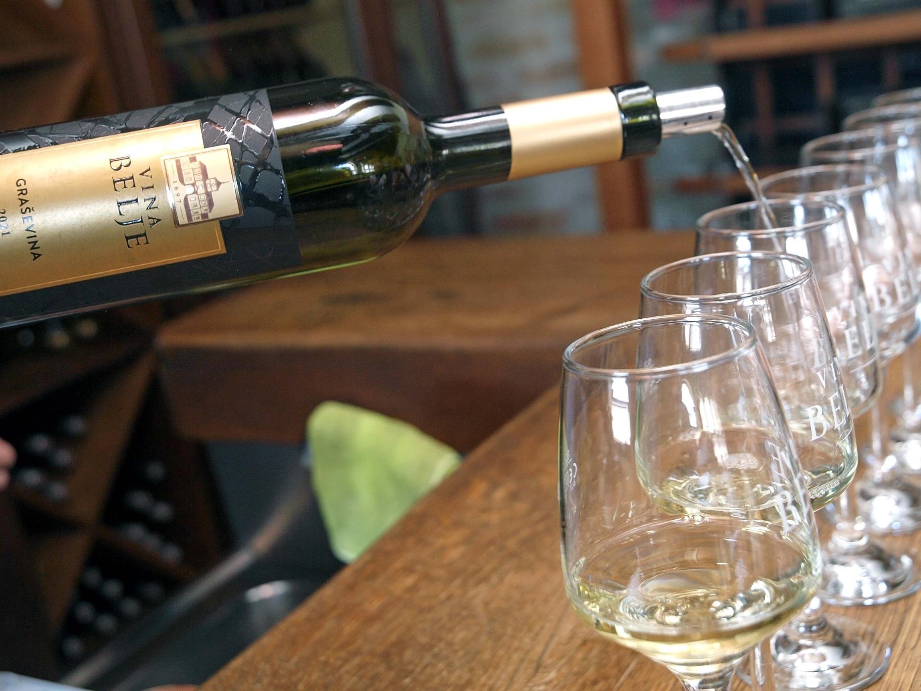 Novinarska turneja počela je u starom podrumu Belje, gdje se uz opise vina o kojima je govorila Djendjija Burjan, kušalo Premium graševinu i razgledalo podrum koji datira iz 1526. godine kada je, za vladavine Turaka, korišten kao konjušnica, skladište i zatvor. Godine 1697. princ Eugen Savojski, nakon pobjede nad Turcima, kao nagradu dobiva južni dio Baranje na poklon i na vladanje te pritom radi prenamjenu prostora u vinski podrum. Podrum je potpuno renoviran prije 13 godina (2011. godine) kao spomenik kulture. U tom su procesu napravljene nove bačve 330.000l , u suradnji sa talijanskom bačvarskom obitelji Garbelotto, izrađene od spačvanskog hrasta. Tvrtka Belje najveći je proizvođač vina sa vlastitih površina u Hrvatskoj, sa proizvodnjom od 4 milijuna litara vina godišnje i nasadima vinove loze na ukupno 650 ha, smještenima na južnim obroncima Banovog brda. Arhiva, skrivena na najdonjoj etaži starog podruma, ima 20.000 boca od čega je gotovo 6.000 reprezentativnih primjeraka. Najstarija boca u podrumu je cabernet franc iz 1949 godine.
