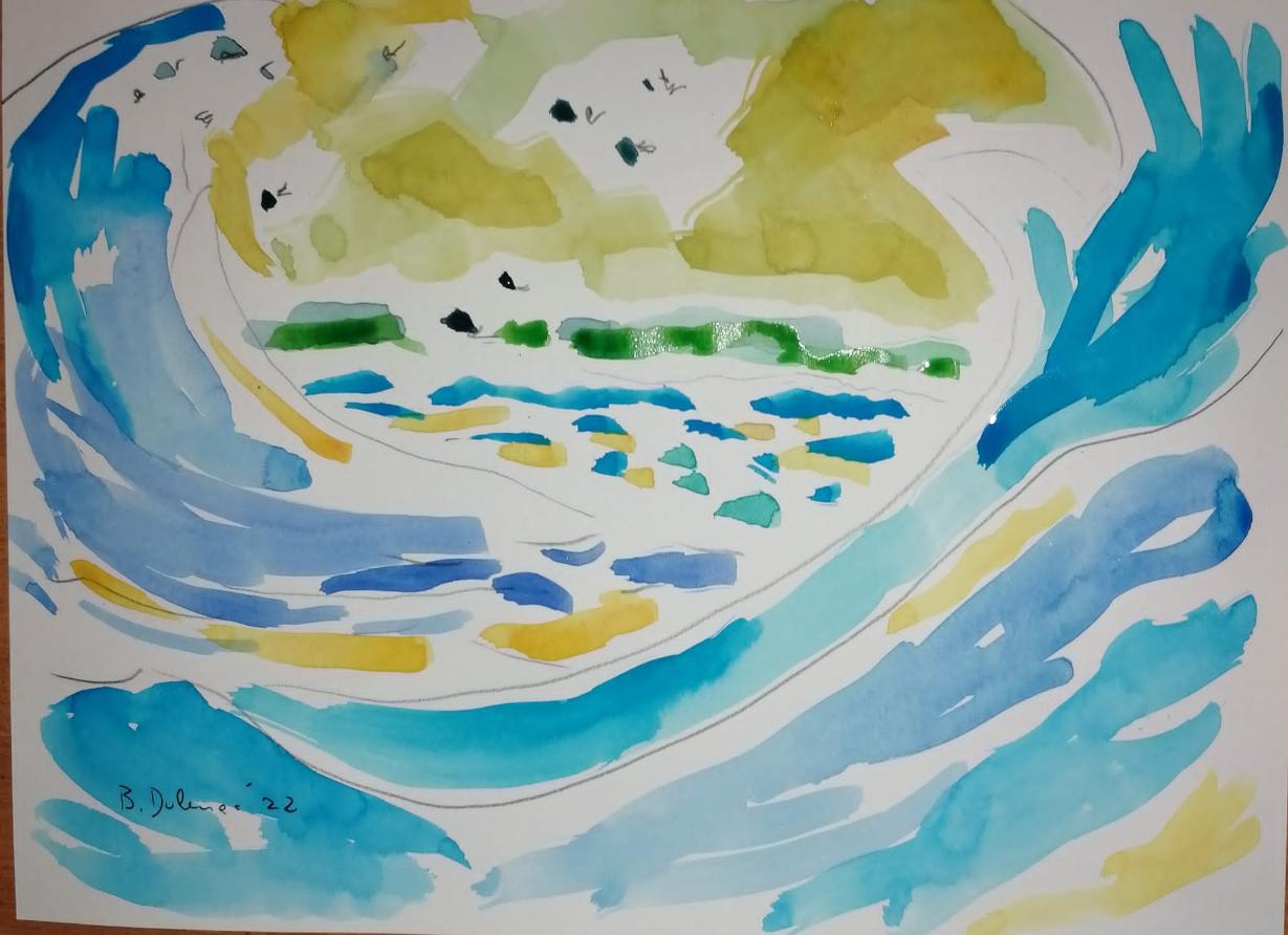 Suvremeni hrvatski likovni umjetnik, akademski slikar Bojan Dolenec, autor poticajnog i obećavajućeg opusa, izlagač na nizu dobro prihvaćenih samostalnih izložbi, proteklih se dana većinom prepušta magičnoj moći akvarela, kreirajući vrlo zanimljivi ciklus na formatu A4, bilježeći mnogobrojne krajolike, daleke i udaljene, bliske istodobno, nepoznate zemlje i posve neznana mora, bilježeći svoje doživljaje, razmišljanja, ali i emocije o stvarnosti koju je nakratko napustio za vrijeme imaginarnog putovanja