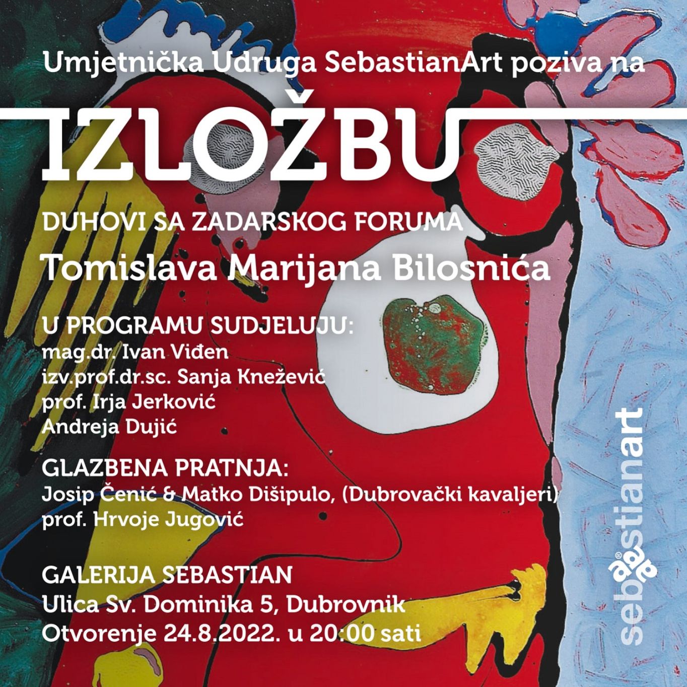 Izložba slika Tomislava Marijana Bilosnića „Duhovi sa zadarskog Foruma“ otvorena je u srijedu 24. kolovoza 2022. godine s početkom u 20 sati u Galeriji Sebastijan u Ulici sv. Dominika 5., u Dubrovniku. Na izložbi je prikazano osamnaest slika velikog formata iz Liburnskog ciklusa, koji govore o autorovom „poistovjećivanju sa starosjediocima liburnskih gradina, s uljuđenim građanima rimskih kolonija i municipija“, kako stoji u katalogu, kojega su svojim tekstovima popratili Aleksandar Stipčević i Ive Šimat Banov. Uz Tomislava Marijana Bilosnića na otvaranju izložbe sudjelovali su dr. Ivan Viđen, izv. prof, dr. sc. Sanja Knežević, prof. Irja Jerković i Andreja Dujić, uz glazbenu pratnju Josipa Čenića&Matka Dišipula (Dubrovački kavaljeri) i prof. Hrvoja Jugovića.