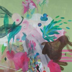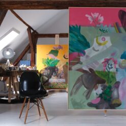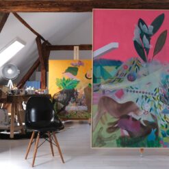 Šimunović kontinuirano slika i istražuje izvanredne mogućnosti velikih formata, komponirajući fragmente vlastite memorije, fluidno ih zaokružujući u delikatne cjeline.