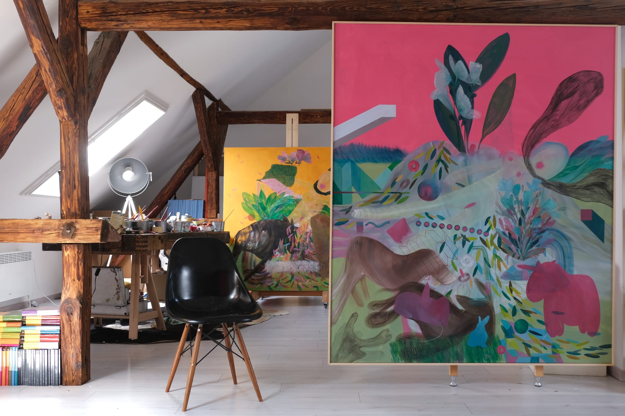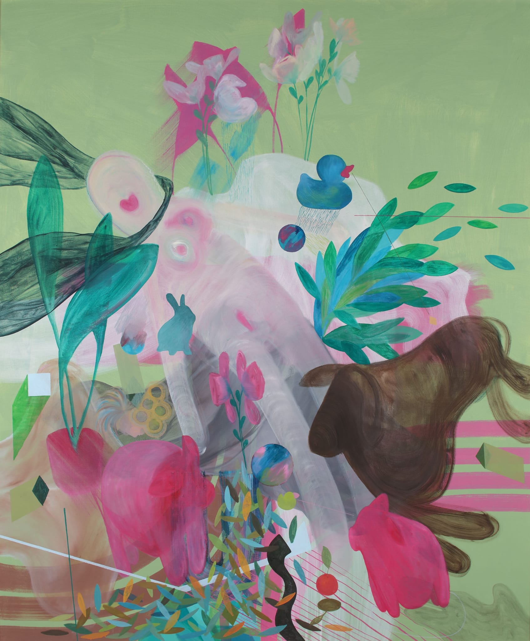 Šimunović kontinuirano slika i istražuje izvanredne mogućnosti velikih formata, komponirajući fragmente vlastite memorije, fluidno ih zaokružujući u delikatne cjeline.