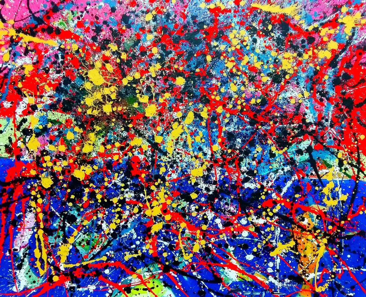 U novom poletnom i raznobojnom ciklusu posvećenom Jacksonu Pollocku, Žunjić kreira neobičan svijet uznemirenih točkica i pravaca izrazito snažnih boja u kolopletima nerazjašnjivih gibanja i događanja, potpuno oslobađajući vriskove kolora.