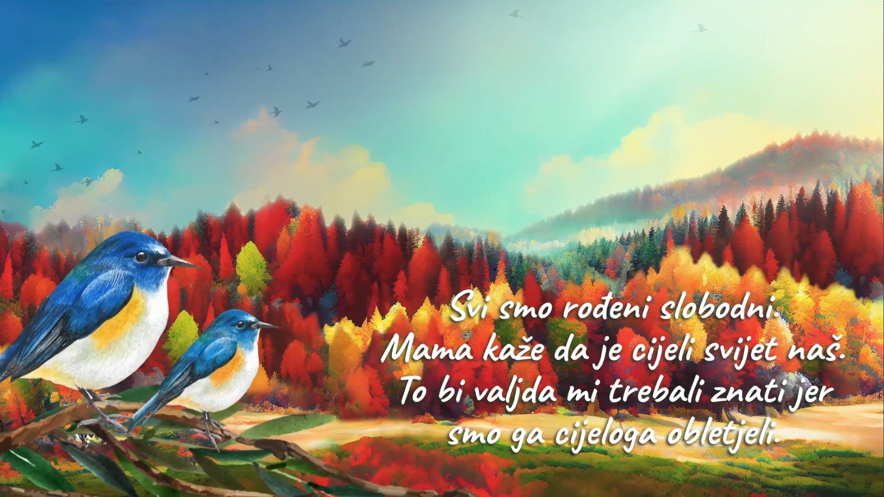 Svi smo rođeni slobodni. Mama kaže da je cijeli svijet naš. To bi valjda mi trebali znati jer smo ga cijeloga obletjeli – prve su riječi edukativnog video uratka Centra za nestalu i zlostavljanu djecu kojim se želi senzibilizirati javnost o važnosti integracije raseljenih osoba