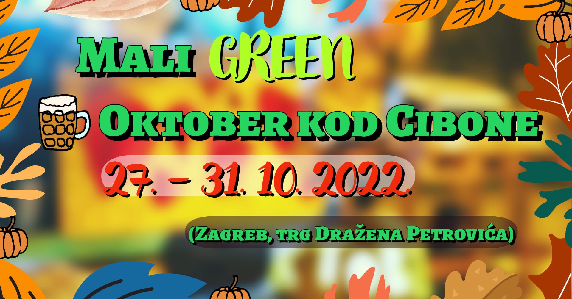 Kao što smo oživjeli uspavano područje ispod Hendrixovog mosta, tako smo odlučili revitalizirati i probuditi i prostor nekad omiljene Cibone, sportsko poslovnog centra i prepoznatljivog simbola Grada Zagreba XX. stoljeća. Budući da je danas pomalo zaboravljen, obogatit ćemo ga novim sadržajima i aktivnostima za velike i male. Ne nije šala, vijest je baš prava! Rekvizite s Green Rivera preselit ćemo na novu lokaciju, jer naša je misija od staroga raditi novo, primjenjivo i korisno uz naš moto Reuse not abuse! U suradnji s KK Cibona i Muzejem Dražena Petrovića prisjetit ćemo se i našeg Amadeusa i kroz sportski kviz i košarkaške egzibicije,uz nagrade pobjednicima ( ulaznice za posjet Muzeju Dražena Petrovića, knjiga ” Prvi košarkaški koraci ” te jedna nagrada iznenađenja ) i na taj način se prisjetiti nikad zaboravljenog sportskog virtuoza (29.10). Radno vrijeme Malog Green Oktobera je od četvrtka 13.00:02.00, petak 13.00: 02.00, subota 11.00:02.00, nedjelja 12.00:24.00, ponedjeljak 13.00:24.00 Ulaz je besplatan.