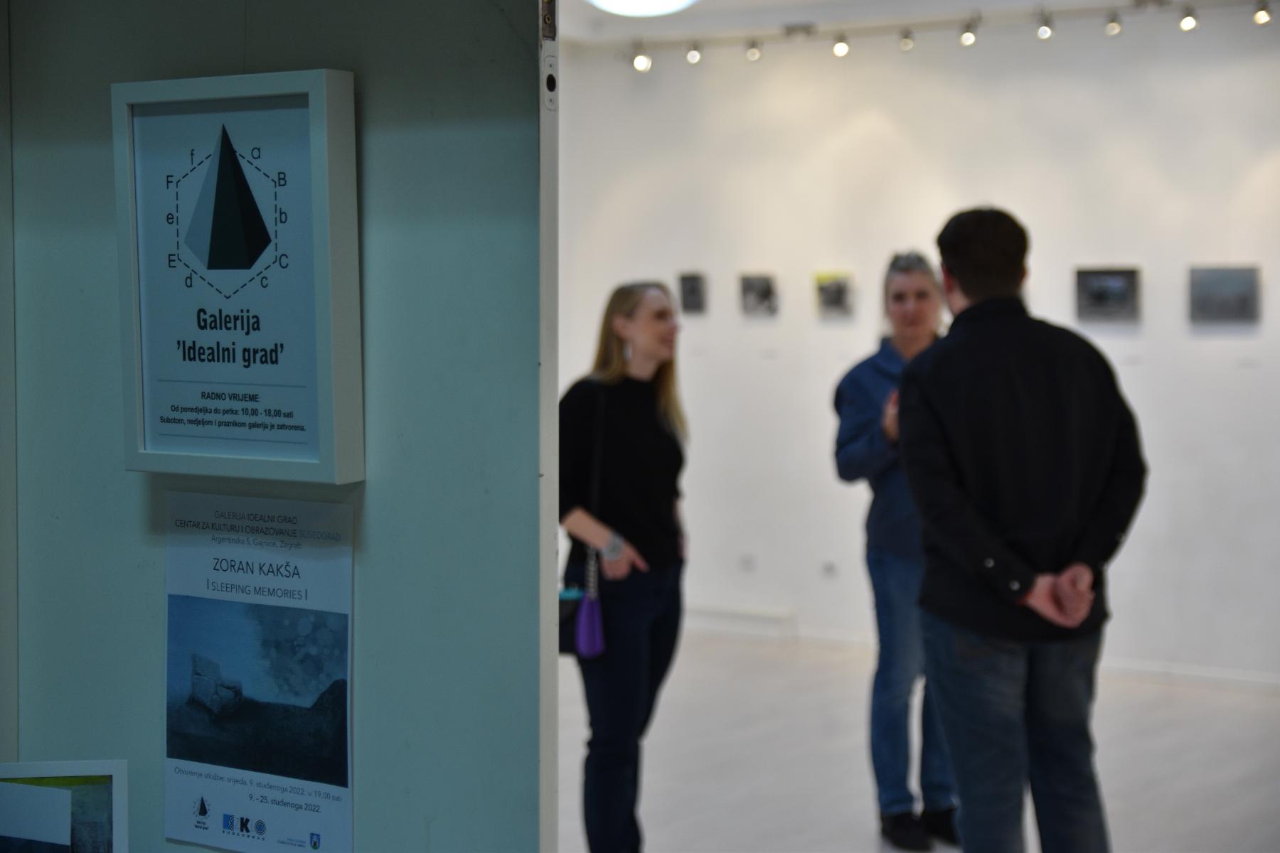Na otvorenju je ravnateljica Centra za kulturu i obrazovanje Susedgrad Tea Bilić pozdravila sve prisutne te izrazila zadovoljstvo što u galeriji Idealni grad predstavljaju ovako zanimljivu, jedinstvenu i kvalitetnu izložbu, stručni suradnik Vedran Markulin predstavio je biografiju umjetnika Zorana Kakše dok je kustosica izložbe Sonja Švec Španjol istaknula kako ciklus “Sleeping memories” predstavlja autorov povratak samome sebi tj. jedan dubok i misaon proces. Zoran Kakša ga intuitivno bilježi na manjim, intimnijim formatima. Oni nisu glasni, oni ne privlače pozornost na prvu, već suptilno pozivaju promatrača da im se približi i odvoji vrijeme za pomno upoznavanje sadržaja zabilježenih, interpretiranih i s ukazanim povjerenjem podijeljenih trenutaka iz bogatog, predanog i posvećenog života autora sa svim svojim usponima i padovima, ali i lekcijama – kako osobno usvojenim tako i nesebično prenesenim na buduće generacije. Na kraju se umjetnik Zoran Kakša zahvalio svima na dolasku te istaknuo je kako ovaj ciklus posvetio dragom prijatelju i kustosu Nikoli Albanežeu koji nas je prerano napustio početkom ove godine te koji je od samih početaka kvalitetno pratio i predstavljao Zoranov rad i kontinuirano ga poticao na daljnje stvaralaštvo. Nakon službenog otvorenja, posjetitelji su u ugodnoj atmosferi detaljno razgledali izložbu.