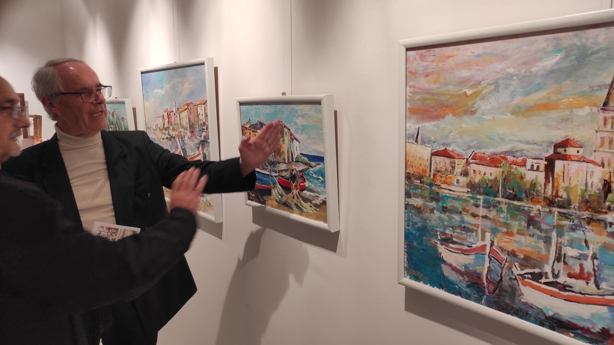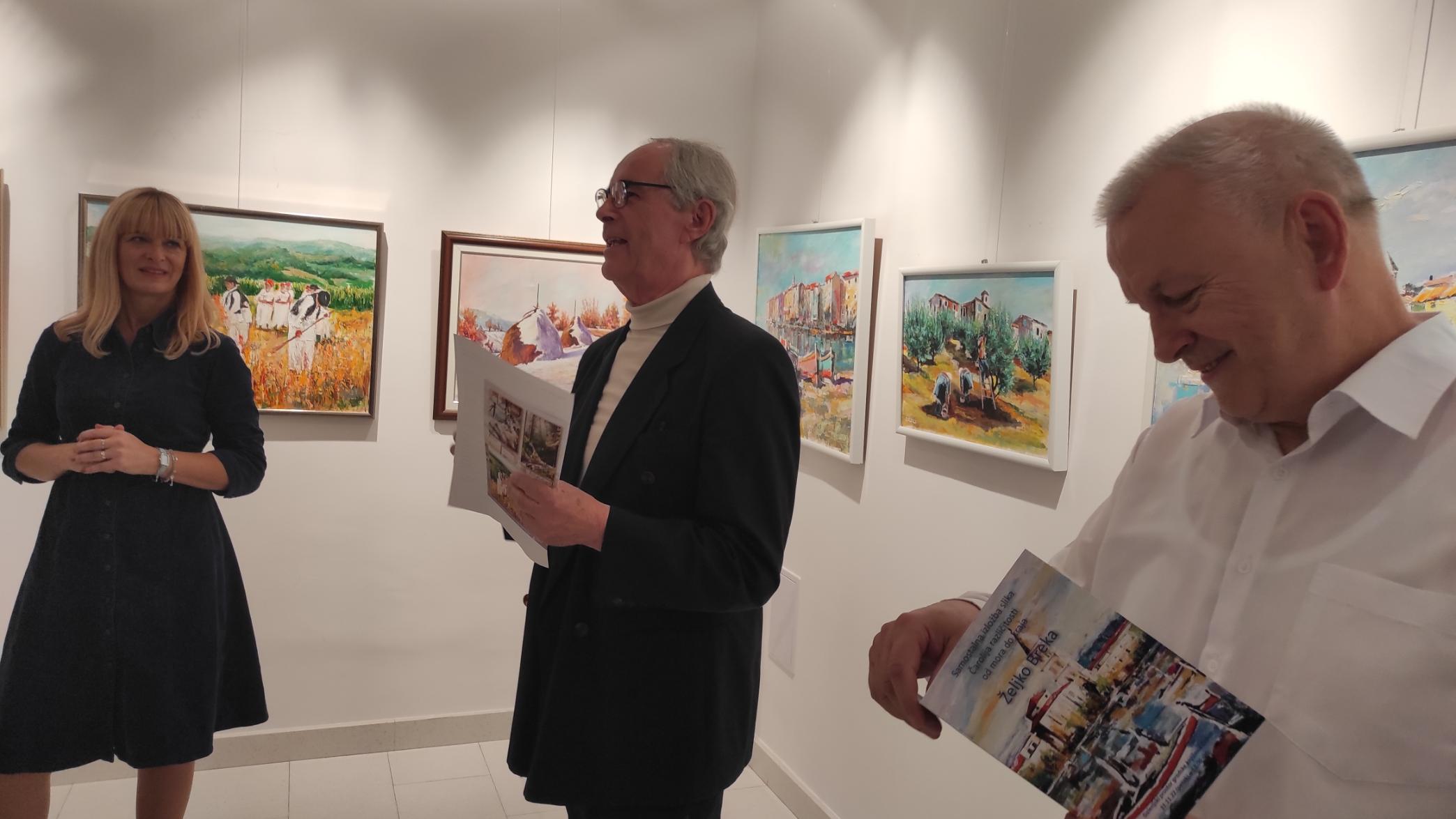 Na početku izlaganja posebno je istaknuo kako je „Željko Breka jedan od onih umjetnika kojima vjerujemo“, te koji kroz svoju izložbu sugerira svoj životni put, od mediteranskog ambijenta (mora) do Like i Zagorja (kraja).