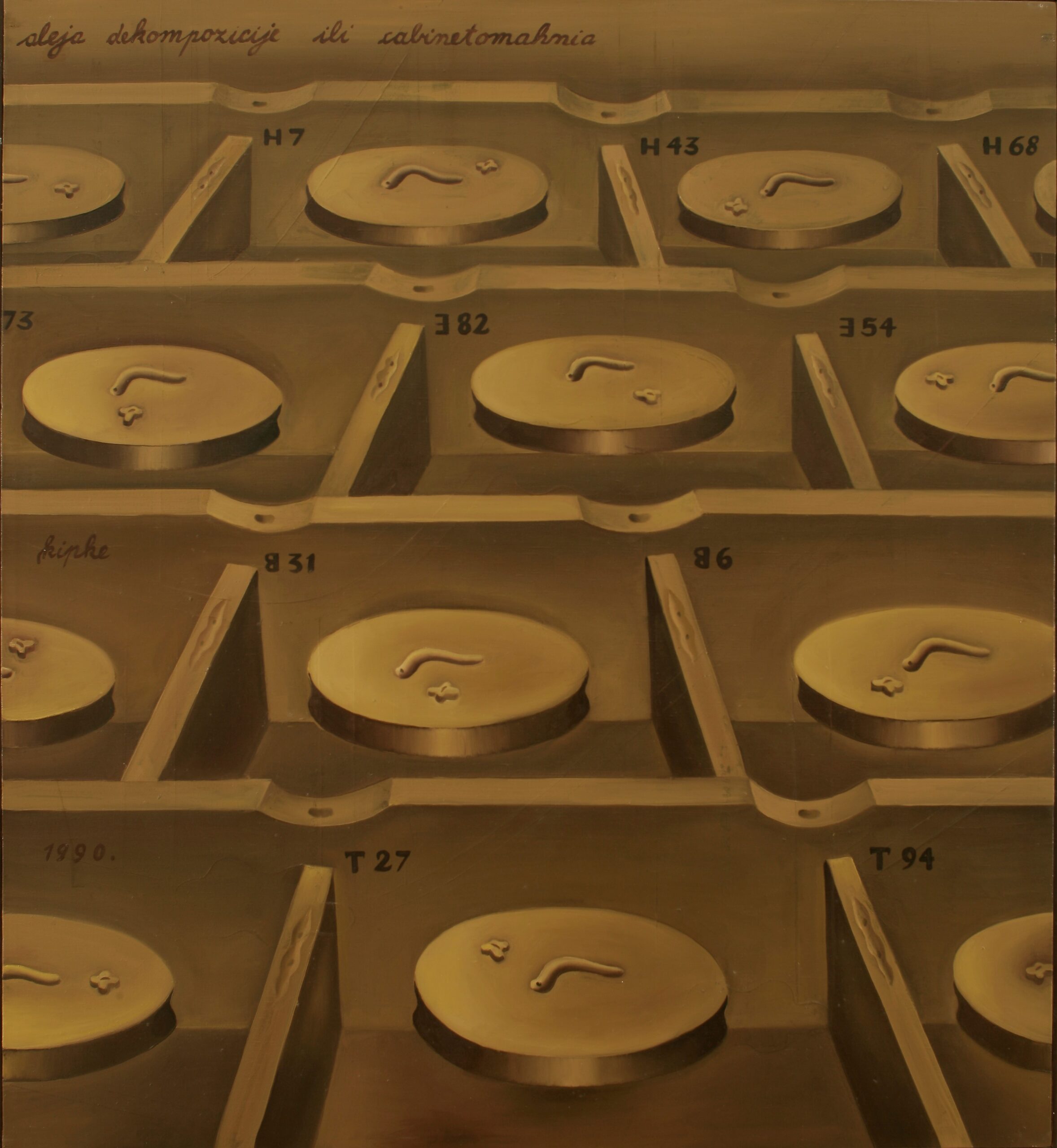 Značenjima izuzetno kompleksan ambijent pod nazivom Kabinet molitvenih strojeva više je puta mijenjan i prostorno prilagođavan, a svoj zametak imao je 1987. na jednoj izložbi u Beogradu. U sklopu toga ambijenta – vjerojatno svoju najkompleksniju verziju imao je za potrebe scenografije u kazališnoj predstavi Budi se lijepa! izvedenoj 1993. po tekstu Kipkeove knjige Mundus subterraneus – autor kreira intelektualno potentne ansamble sačinjene od intrigantnog amalgama slikarskih i ready-made postupaka. Riječ je o prakticiranju integralnog slikarstva u kojem kao slikarska podloga mogu figurirati i neki obični upotrebni predmeti, a ulogu jednog od ključnih perceptivnih generatora preuzet će realno kretanje ostvareno posredstvom gramofonskih uređaja.
