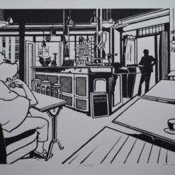 Na dvanaest grafičkih listova umjetnica neke prizore eksterijera tretira vrlo slobodno, gotovo skicozno, poput brzog crteža u tušu ili flomaster, dok je kod prikaza interijera više posvećena minucioznim detaljima prizora. U interijeru se češće javljaju i ljudi čija prisutnost budi laganu melankoliju i sjetu – bilo da se radi o popodnevu u baru nekog mediteranskog grada ili motivu zagrebačke nekadašnje Sveučilišne knjižnice. Taj efekt sveprožimajuće fine melankolije – koja je inherentna mediteranskom podneblju – pojačan je crno-bijelom estetikom monokromatske slike, gdje se akcent boje javlja kao rijetka iznimka.
