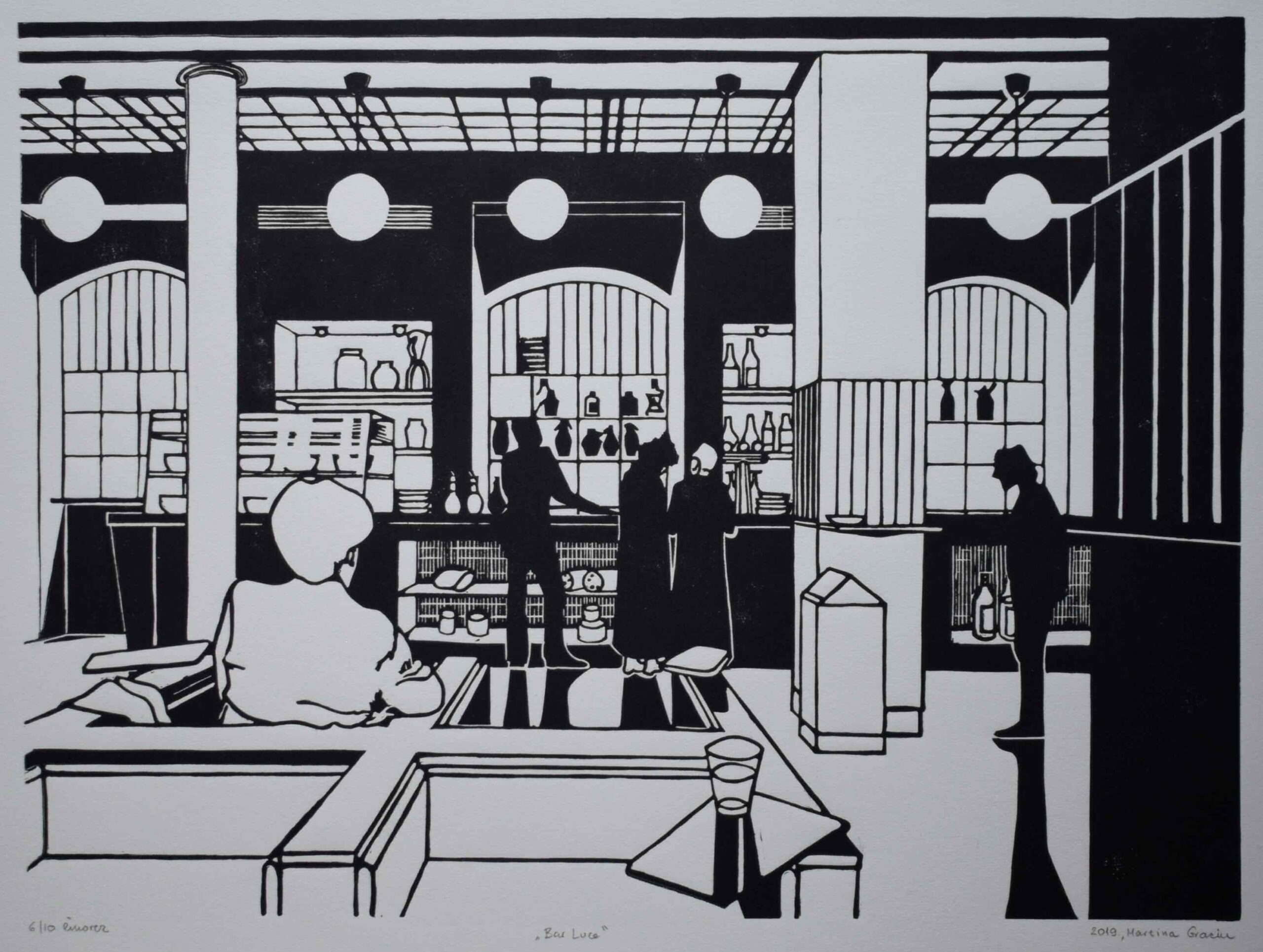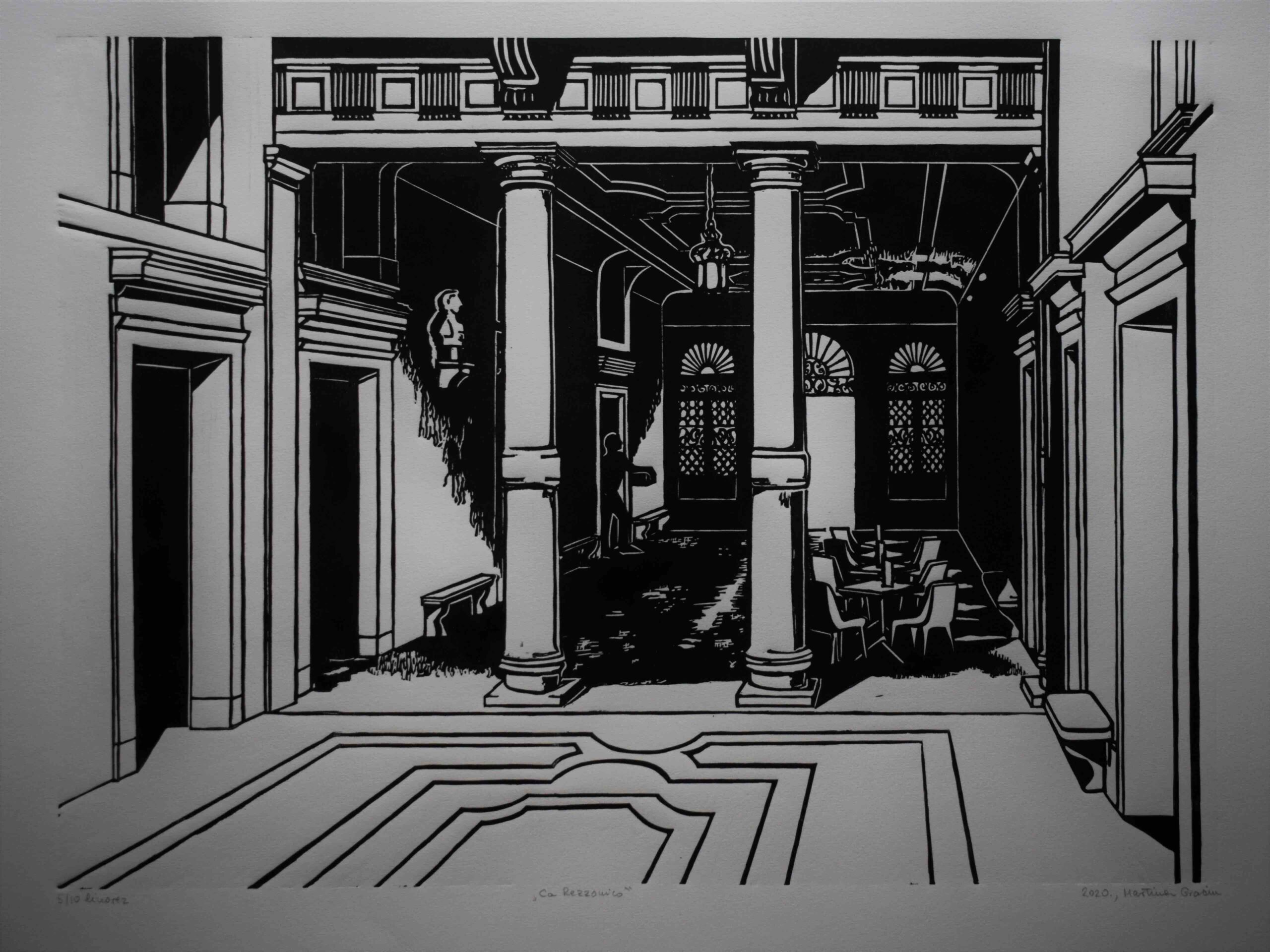 Odlike linoreza su Martini Gracin dale mogućnost da prizore s putovanja po različitim zemljama i gradovima prezentira u kontrastima dubokih crnih sjena i bijelih čistih površina i linija, koje pojačavaju kontrastni emotivni naboj motiva