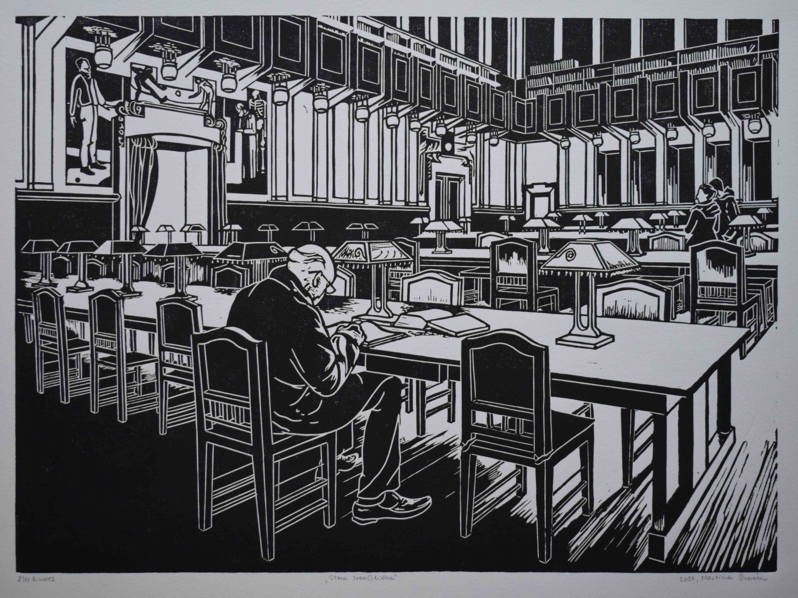 Na dvanaest grafičkih listova umjetnica neke prizore eksterijera tretira vrlo slobodno, gotovo skicozno, poput brzog crteža u tušu ili flomaster, dok je kod prikaza interijera više posvećena minucioznim detaljima prizora. U interijeru se češće javljaju i ljudi čija prisutnost budi laganu melankoliju i sjetu – bilo da se radi o popodnevu u baru nekog mediteranskog grada ili motivu zagrebačke nekadašnje Sveučilišne knjižnice. Taj efekt sveprožimajuće fine melankolije – koja je inherentna mediteranskom podneblju – pojačan je crno-bijelom estetikom monokromatske slike, gdje se akcent boje javlja kao rijetka iznimka.