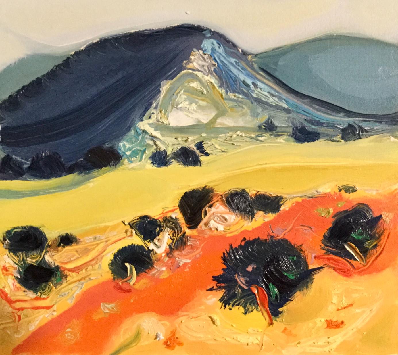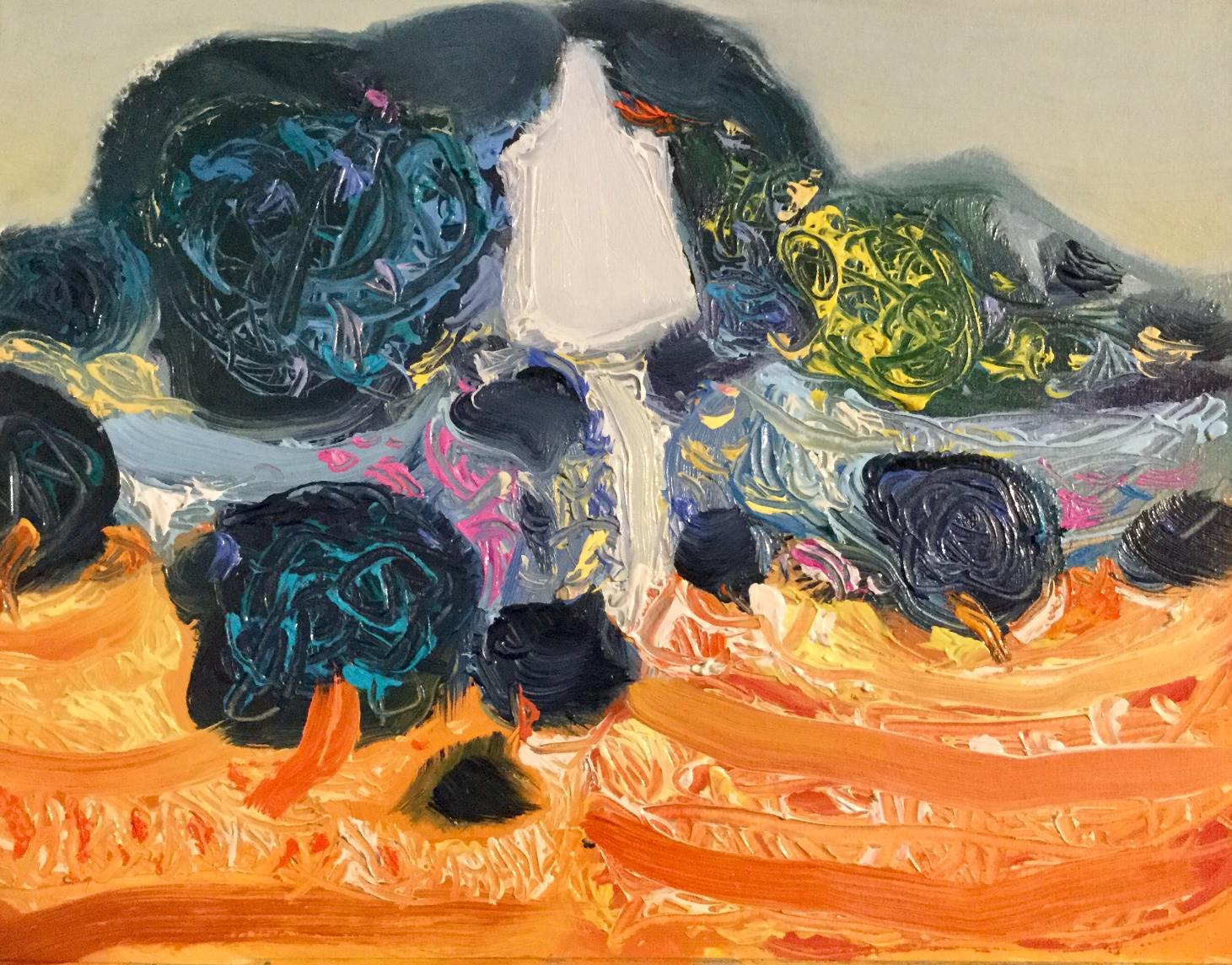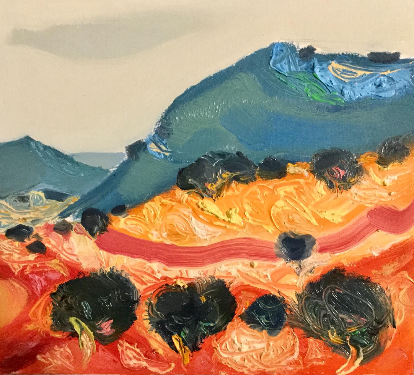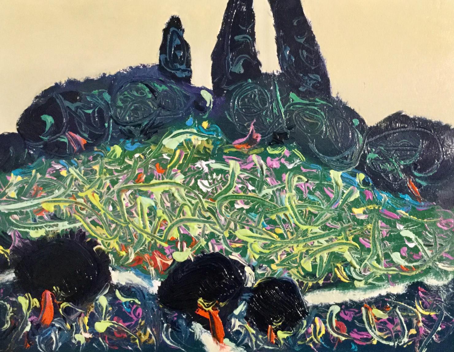 Najnoviji ciklus ulja na papiru s omiljenim mediteranskim motivima i dalje koloristički žestok, mada je snaga boja ponešto ublažena u tvorbi stvarno nestvarnog svijeta, vrućeg dana sredinom ljeta, gotovo potpuna tišina, tek rijetki povjetarac zanjiše grane i lišće, rijetki cvrkut ptica, vreli zrak nalegao je na more, na suho tlo, na žedno drveće.