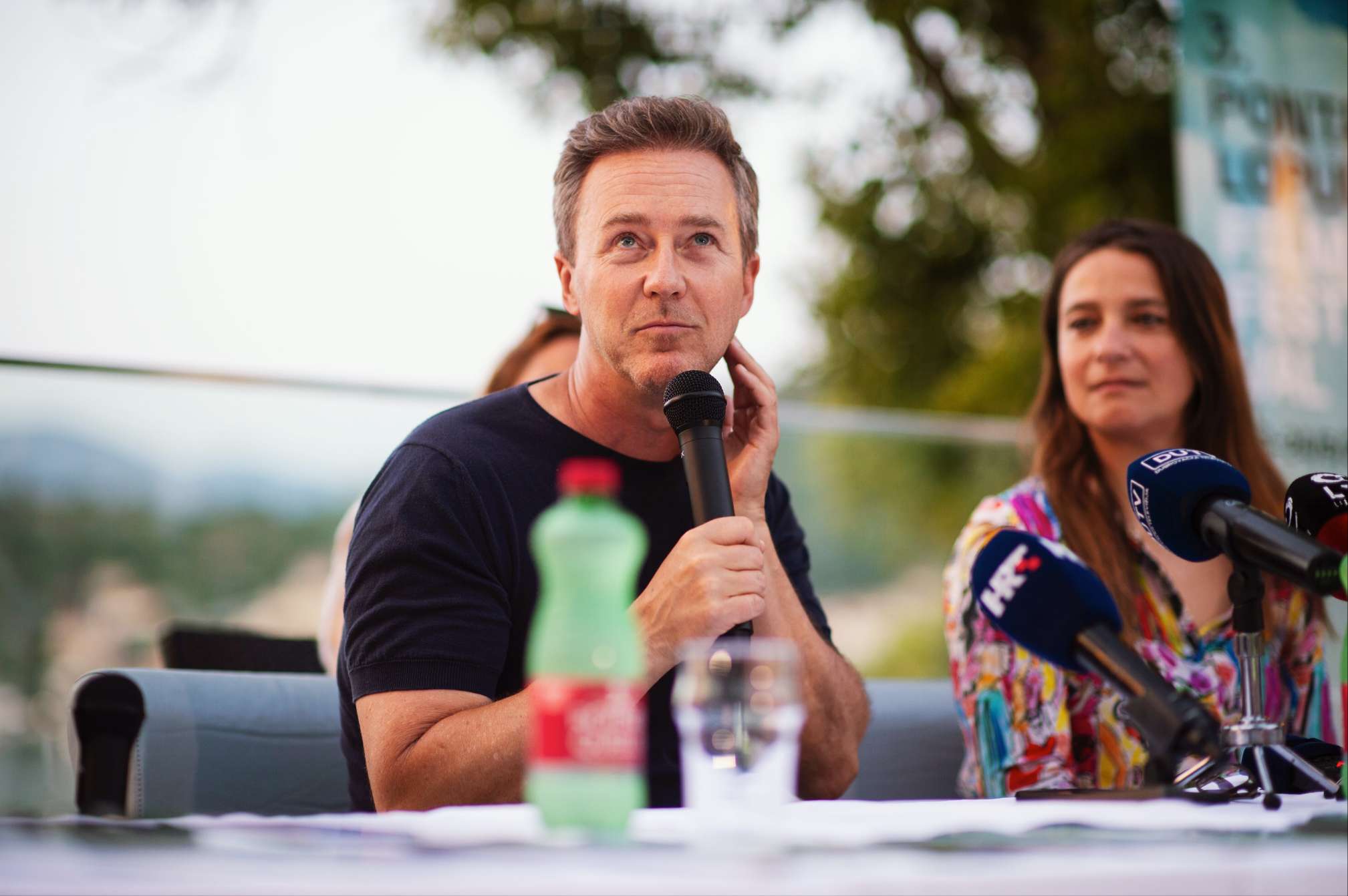 Konferenciji za medije na terasi hotela RMH Lopud Lafodia Resort & Wellness prisustvovali su sudionici, ali i predavači i masteri Edward Norton, Ruben Östlund i direktorica fotografije na filmu Urszula Pontikos koji će na Lopudu održati masterclassove za glumce i redatelje, odnosno stručne programe za snimateljice.