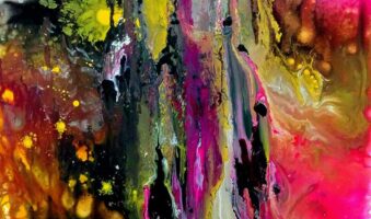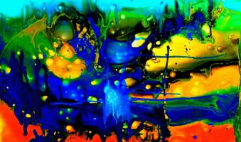 Promatrajući novi ciklus tekućih akrila, zatičem se u razmišljanju, čini mi se, kao da se mlazovi, plohe, mrlje i dalje kreću, slijedeći skrivene nagone, u pokušaju da dostignu nevidljive udaljenosti.