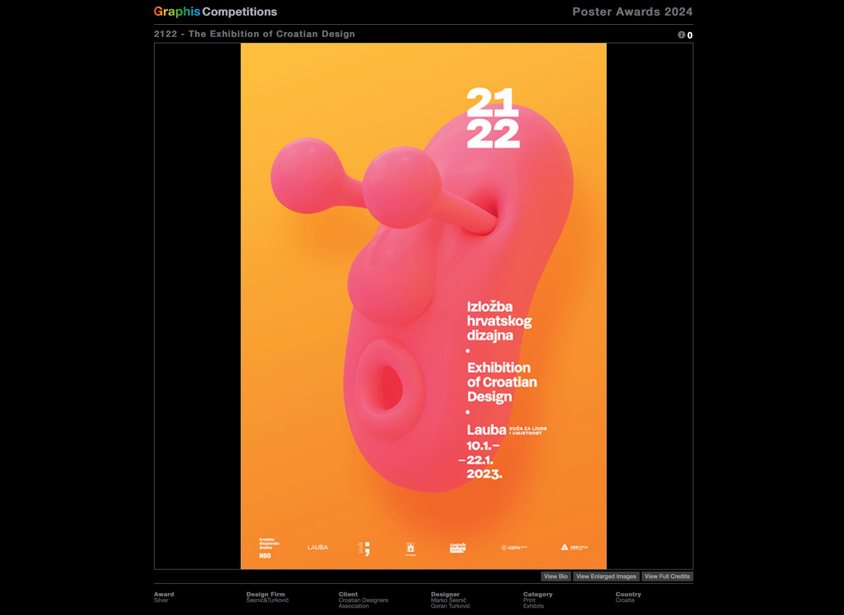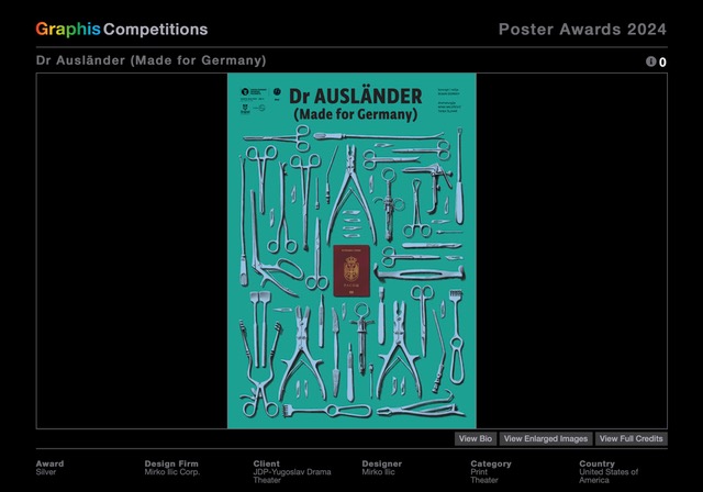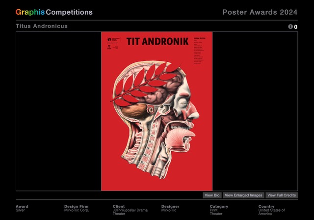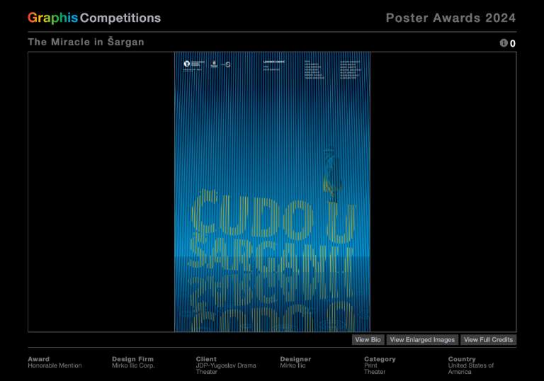 Jednom od 14 dodijeljenih “platinastih” nagrada okitio se renomirani zagrebački dizajnerski studio Šesnić&Turković, a drugom njujorški studio Mirko Ilić Corp. iza kojeg stoji cijenjeni grafički dizajner, politički ilustrator i ilustrator plakata Mirko Ilić. Oba nagrađena plakata ukrasit će stranice eminentnog godišnjaka “Graphis Poster Annual 2024”.