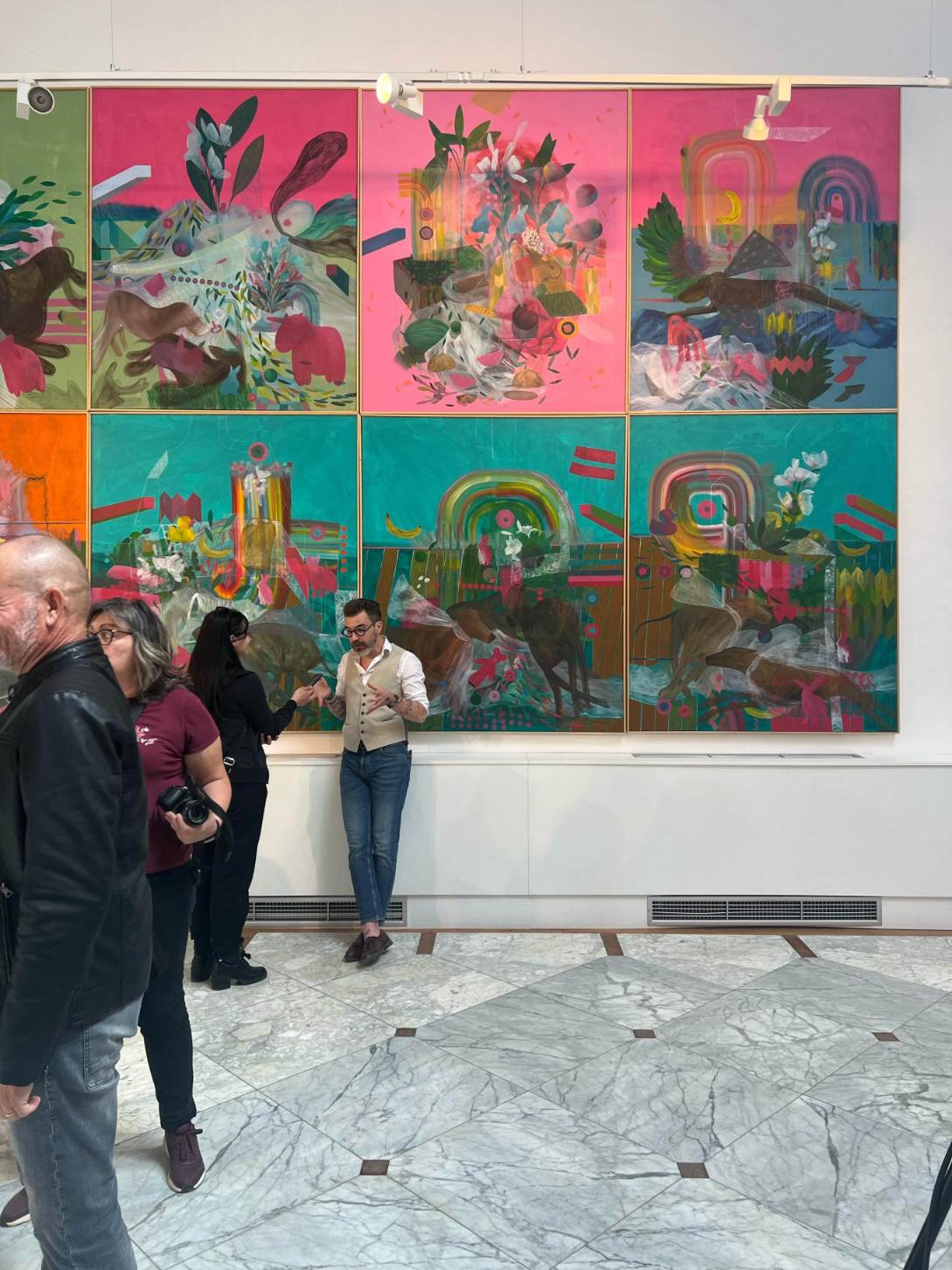 Impresioniraju veliki formati Zorana Šimunovića svojom pričom jer svaka slika nosi svoja obilježja, svoje fragmente memorije u oceanima boja.
