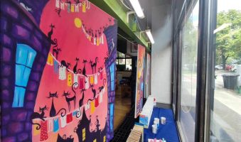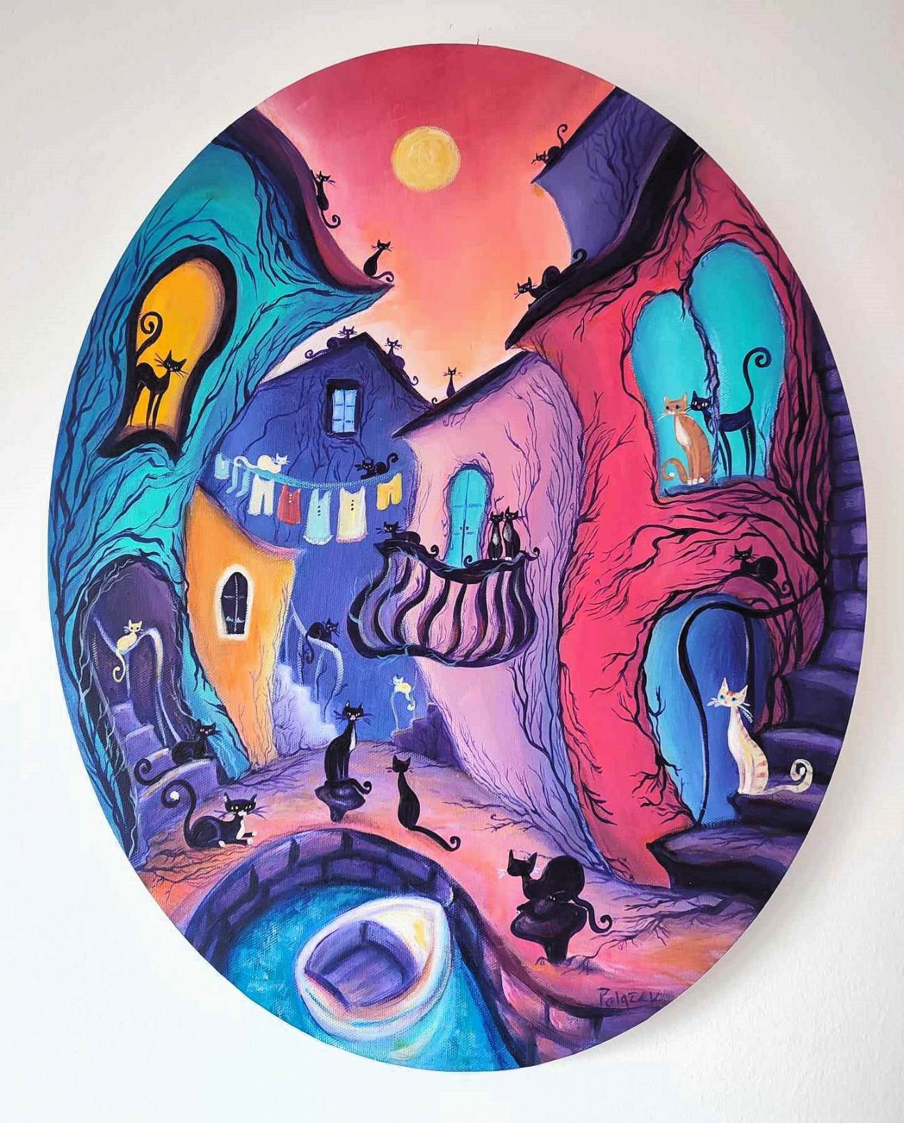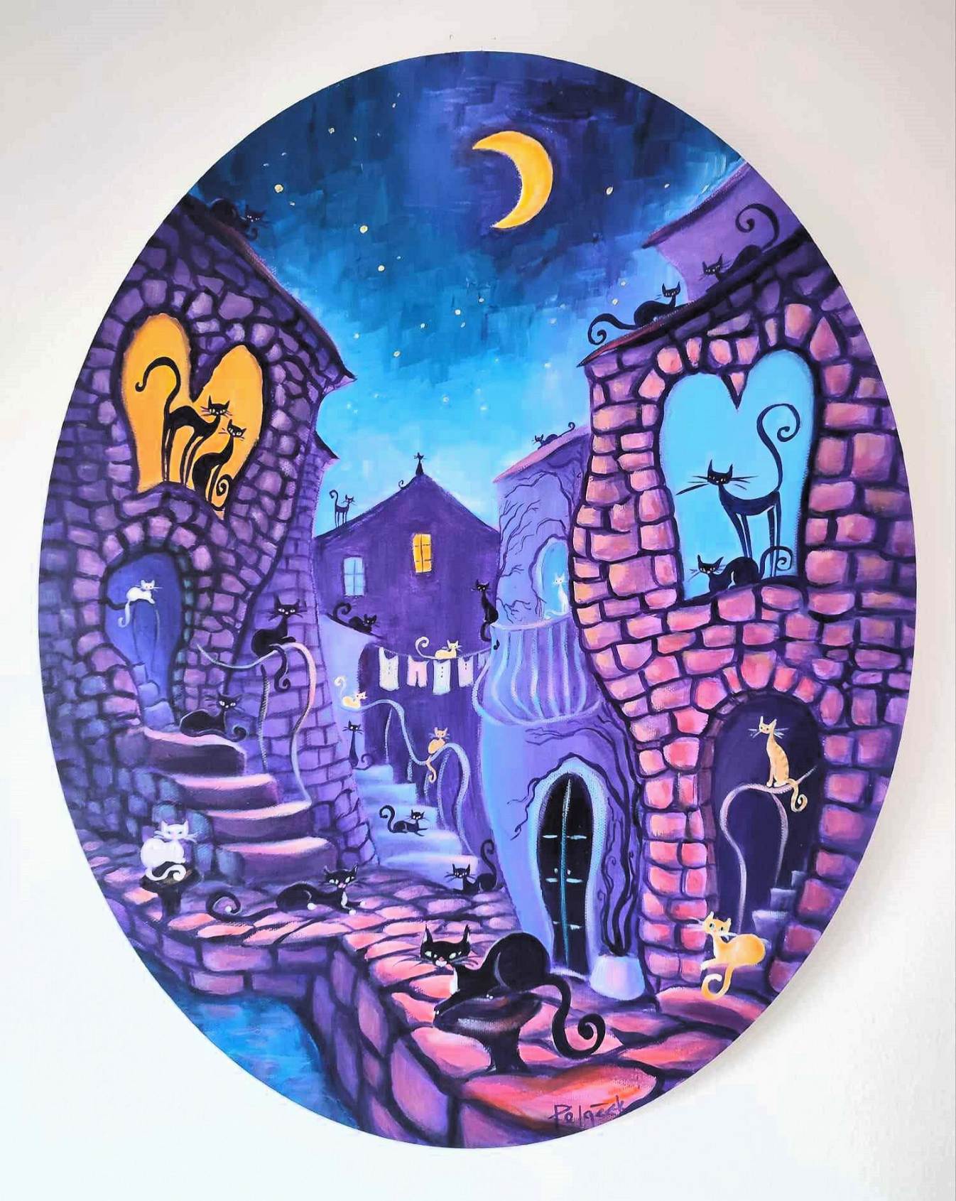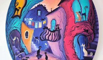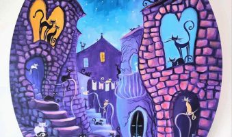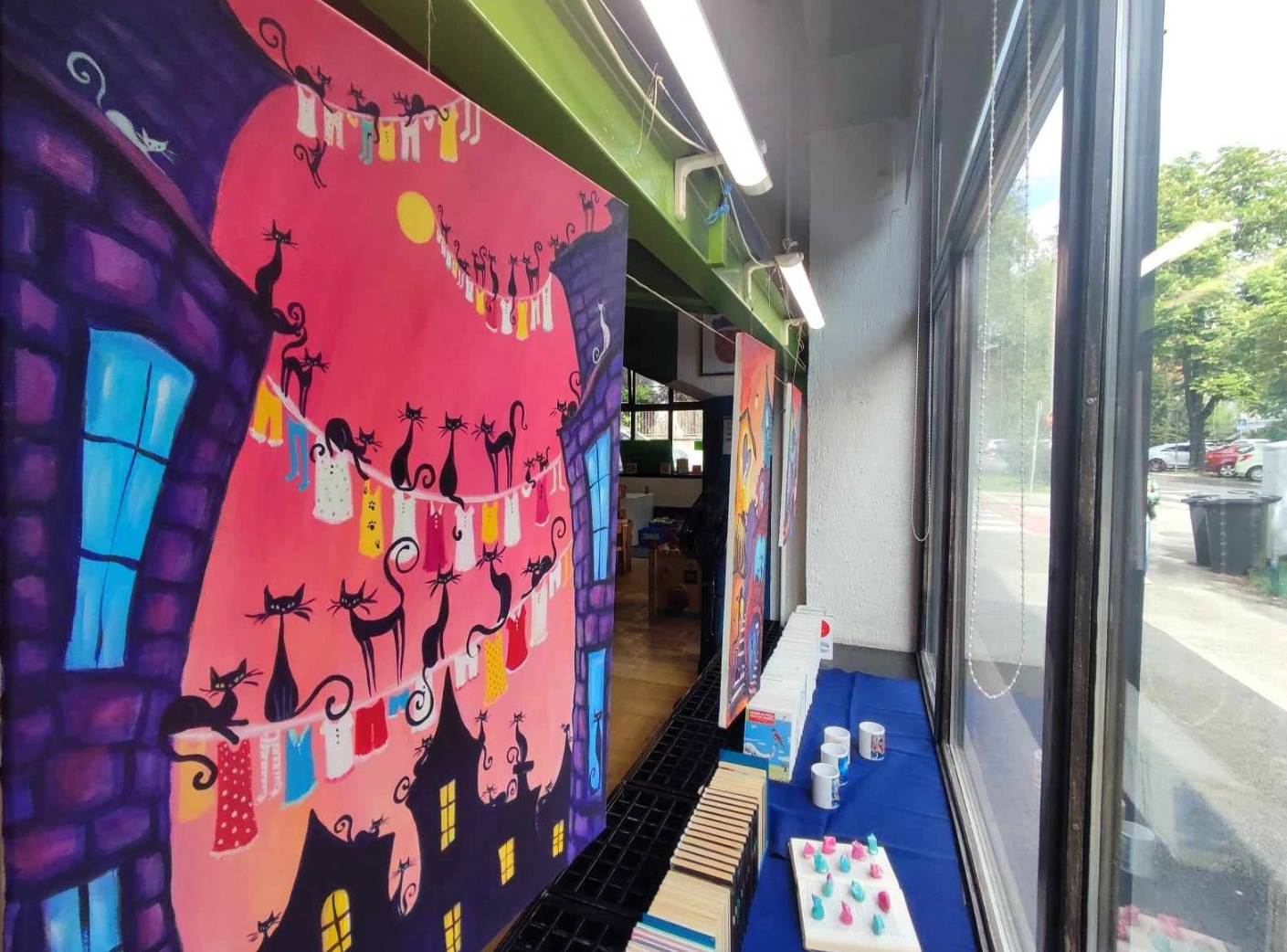Izloženo je šest novih akrila na platnu pod nazivom Mačkoslike, uz nekoliko keramičkih mačjih figurina te primjera art printa na uporabnim predmetima. Ovo je ujedno 44. samostalna izložba autorice.