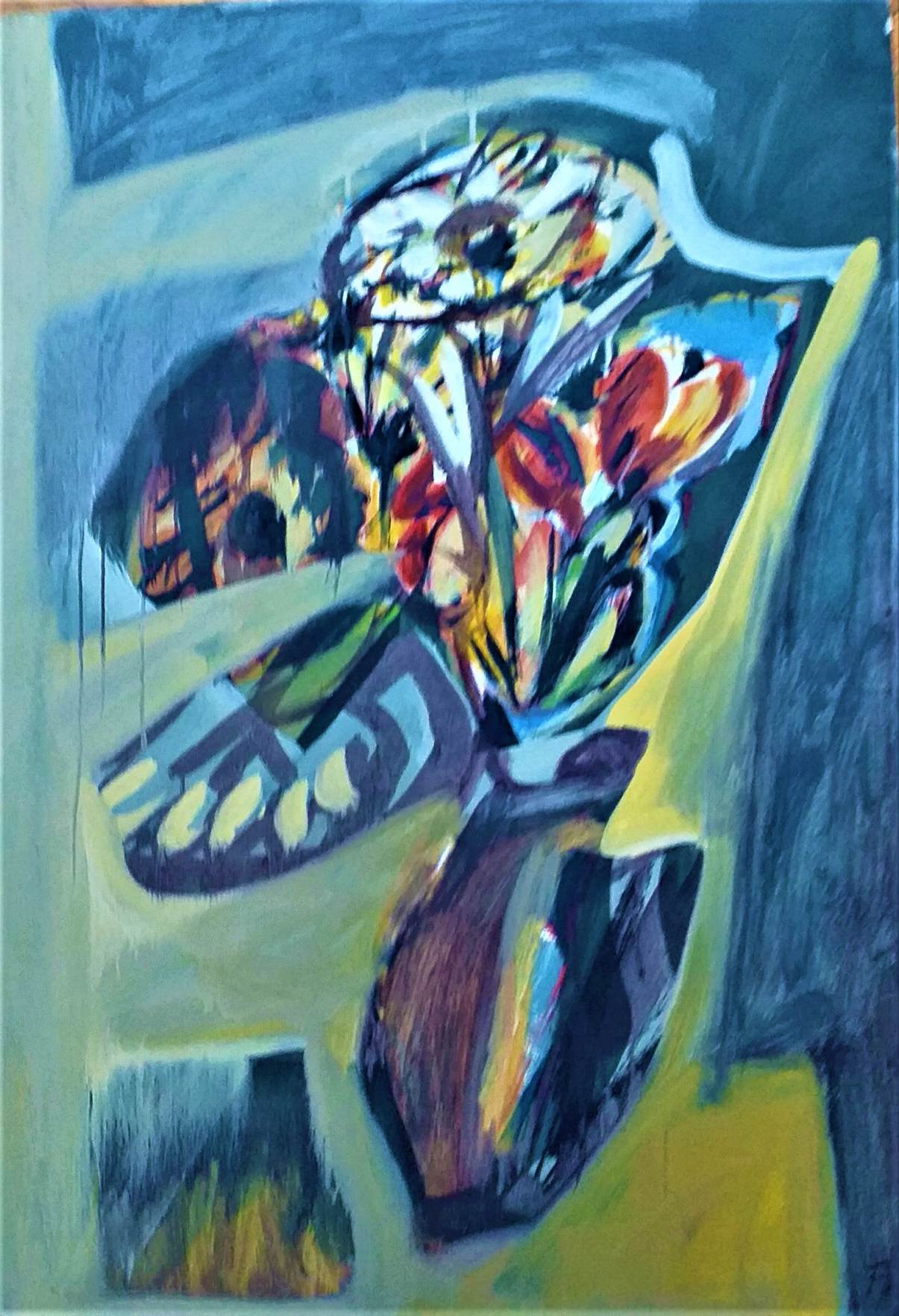 - Evo, ovdje u atelijeru, mnoštvo je slika sa motivom cvijeća gdje sam taj motiv sveo na znak. Sjećam se Tartaglie koji je buket radio u nizu varijacija – govori zagledan u sliku na štafelaju Frane Radak.