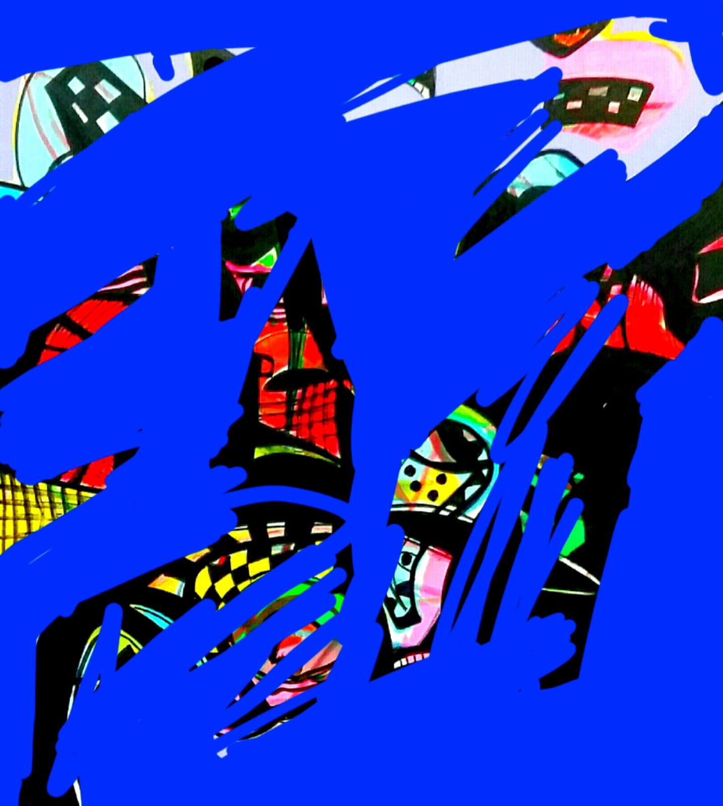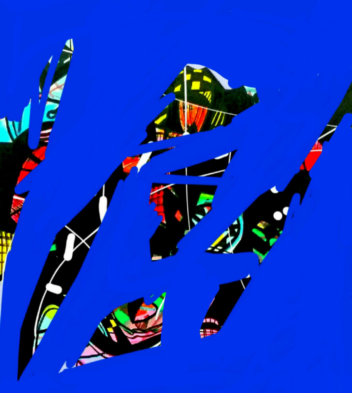 Iz toga plavila, povremeno izranjaju gotovo figurativni fragmenti izrazite simbolike , sačuvani znakovi, ornamentika, glas iz dubina