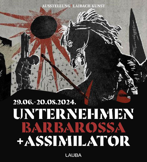 I svojom novom izložbom UNTERNEHMEN BARBAROSSA + ASSIMILATOR Laibach se bavi politički vrućim i skliskim temama u svom prepoznatljivo nepredvidljivom stilu. Što povezuje Allaha i Zvjezdane staze? Picassovu Guernicu i noćne more partizana? Slikarski ekspresionizam i zanatske tepisare u ruralnom Afganistanu? Samo Laibach zna od apstraktnog tijela preko pop kulture u tren oka skočiti na najteža pitanja ljudske egzistencije i primorati nas da se suočimo s nepojmljivim strahotama koje se čine u ime naših zamišljenih zajednica. Otpor je uzaludan – reći će nam Laibach i dodati: Legnite i opustite se.