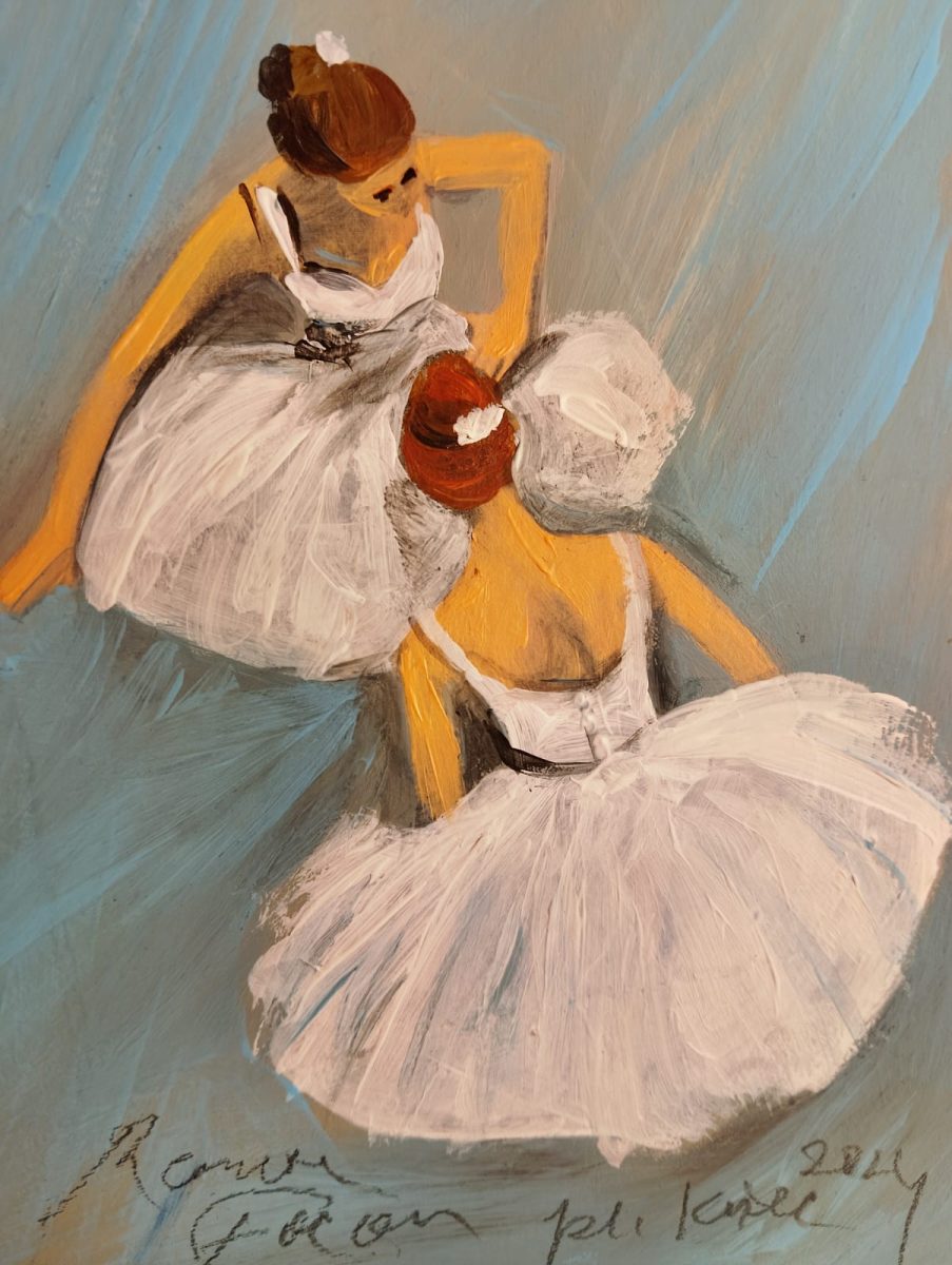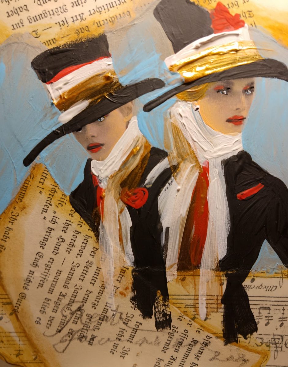 Slikarica je uklopila u jedinstvenu cjelinu ciklusa više svojih poznatih i prepoznatljivih motiva, najprije je riječ o nizu baletnih motiva, balerina u plesu u karakterističnim kostimima, preko više portreta zagonetnih žena u čudesno lijepim kreacijama od haljina do fantastičnih šešira, s upotnim pogledom, upućenog nama, promatračima.